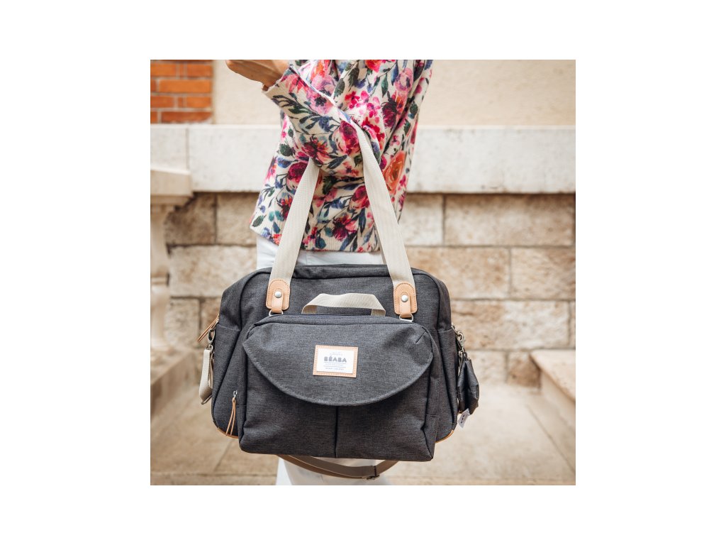A tágas 2 az 1-ben Beaba Geneva pelenkázótáska megkönnyíti és kellemesebbé teszi a babával való utazást. Az elején található levehető tok a pénztárca, a mobiltelefon, a kulcsok stb. átlátható tárolására maximális variálhatóságot kínál a táska használatakor. A nagy belső tér több zsebbel van felszerelve a baba szükségleteinek tárolására. Tartalmaz egy külön tágas termoizolációs táskát a baba ételeihez és italaihoz, egy pelenkázó alátétet, egy függő antibakteriális cumitartót és két fogantyút a babakocsi fogantyújára való felakasztáshoz.