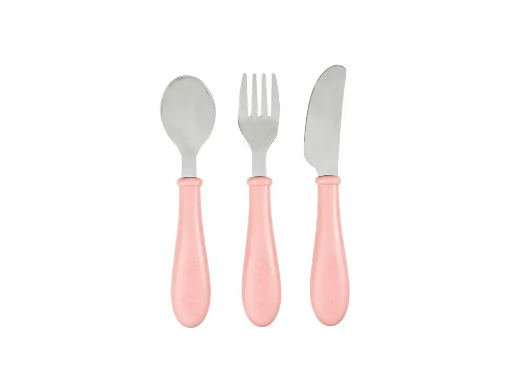 A 3 részes, minőségi rozsdamentes acélból készült, műanyag nyéllel ellátott evőeszköz készlet megkönnyíti a gyermek számára az átállást a kanalas etetésről az evőeszközök használatára. A rozsdamentes acél villa, kés és kanál könnyűek, és az ergonomikus műanyag nyélnek köszönhetően könnyen megfoghatók a gyermekek kezében. A nyél ívelt formája emellett megakadályozza az étel érintkezését az asztallal, amikor az evőeszközöket az asztalra helyezik. Mosogatógépben mosható.