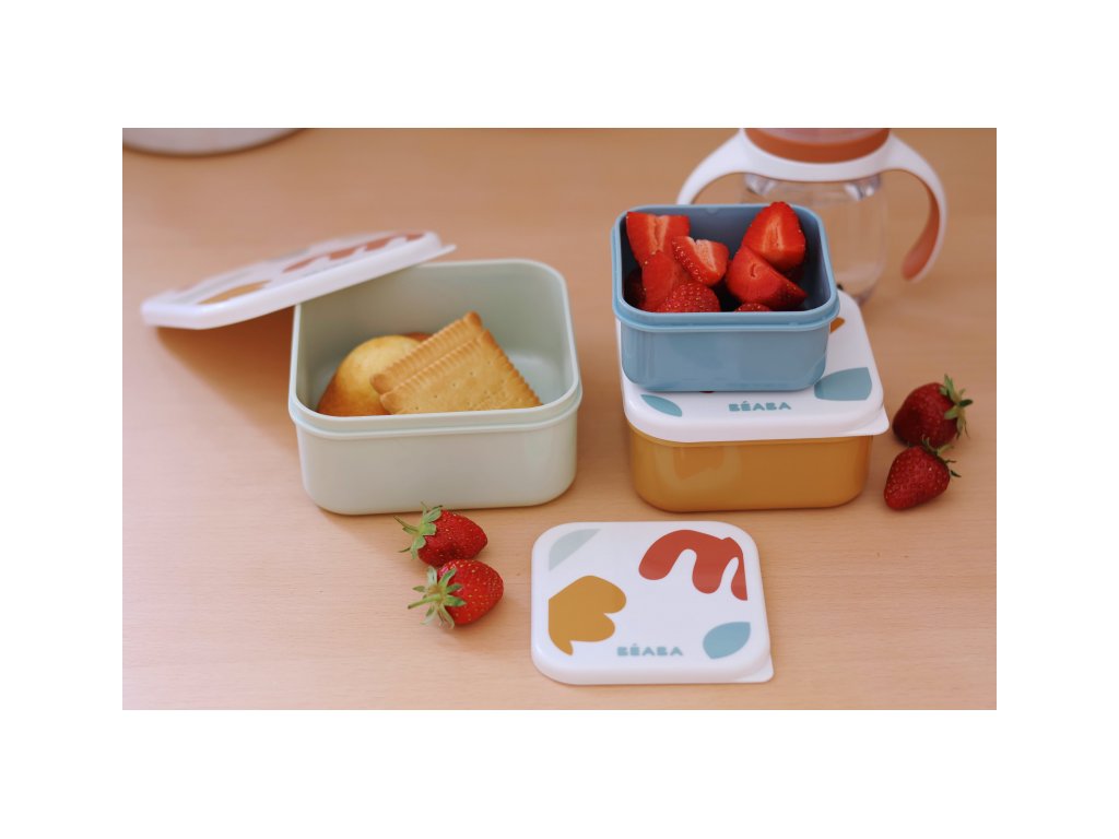A három különböző méretű uzsonnásdoboz készlet ideális uzsonnákhoz iskolába, kirándulásokra és sétákra. A fedél védi a doboz tartalmát szállítás közben, ergonomikus kialakítása pedig lehetővé teszi a könnyű nyitást még a kisgyermekek kezei számára is.