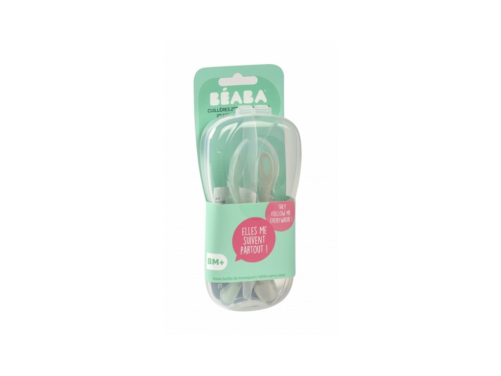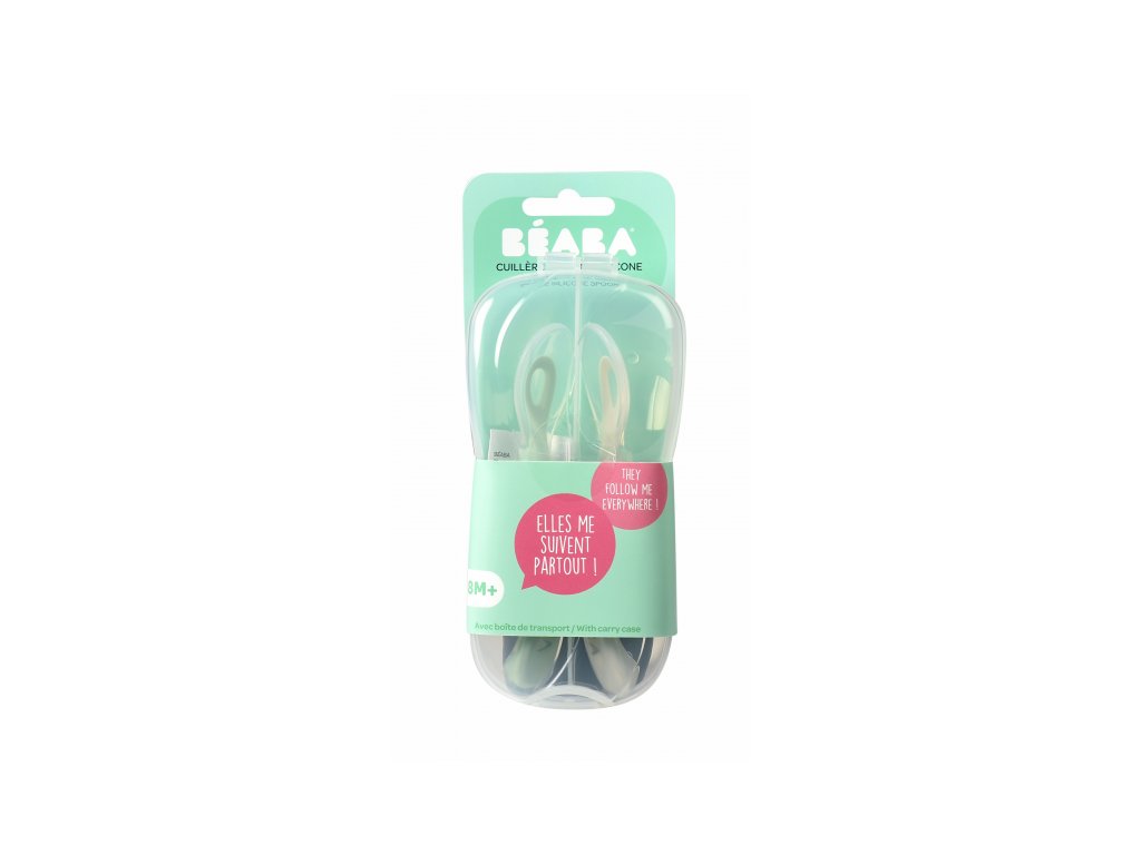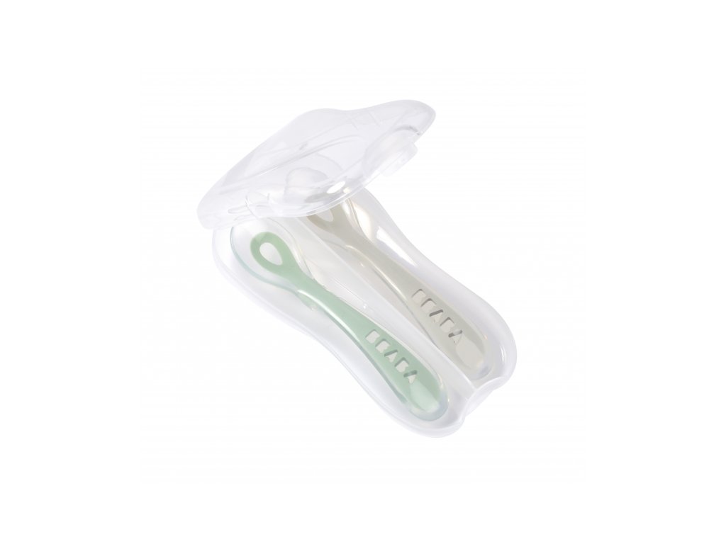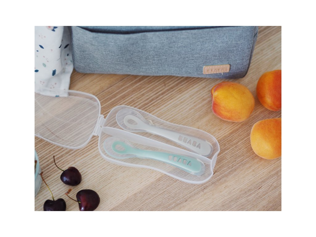 Beaba Szilikon kanál 2 db-os tokkal, zöld