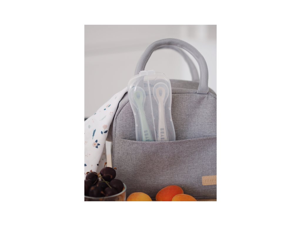 A szilikon kanál az első önálló etetéshez ideális formájú a gyermek szájához. A fogantyú formája megkönnyíti a gyermek számára a kanál tartását. A praktikus tok lehetővé teszi a kanalak higiénikus szállítását például a pelenkázótáskában.
