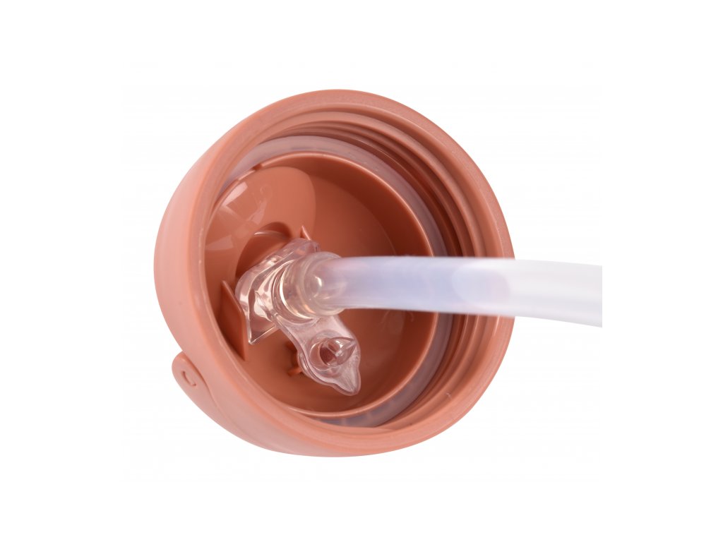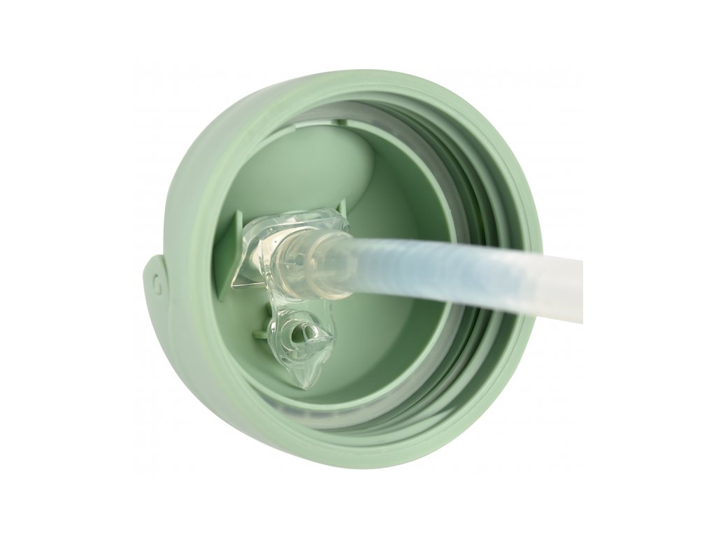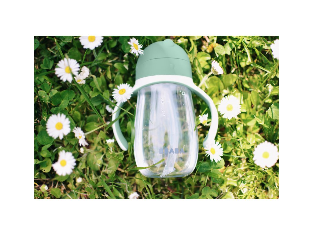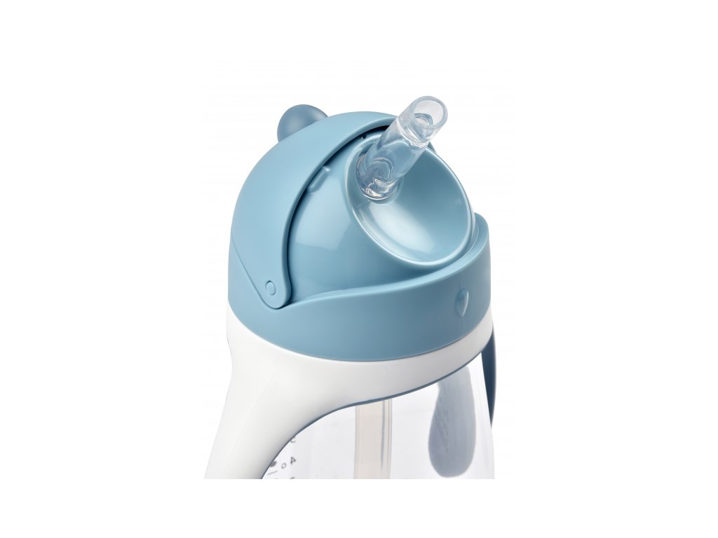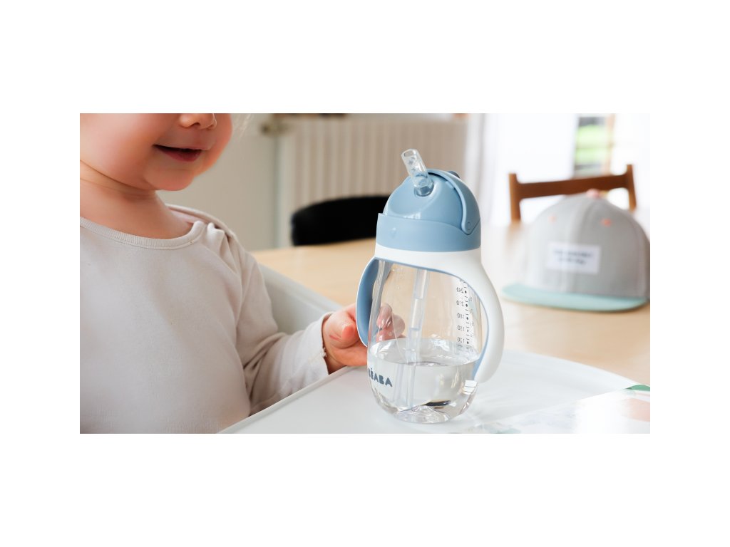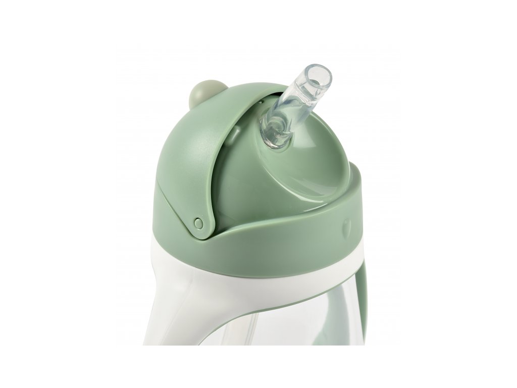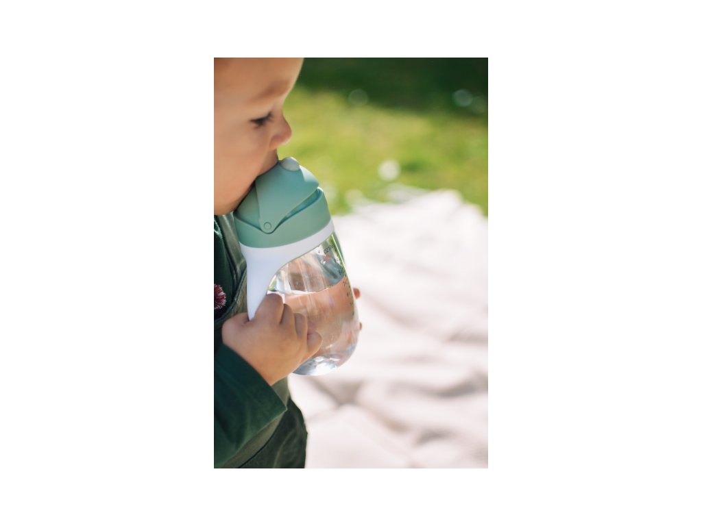 A felpattintható szilikon szívószállal ellátott bögre ideális otthoni és útközbeni használatra. A csúszó fedél és a puha, felpattintható szívószál kombinációja garantálja a biztonságos és higiénikus szállítást a táskában. Ezenkívül a szívószálban lévő szelep megakadályozza a palack tartalmának kiömlését, még akkor is, ha a fedél nincs felpattintva. A levehető fogantyúk megkönnyítik a gyermek számára a bögre tartását.
