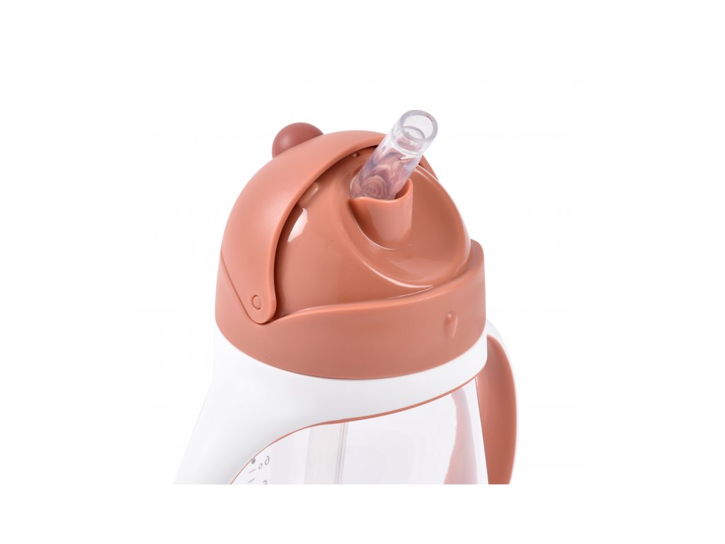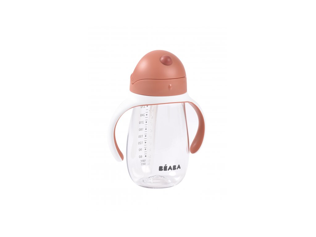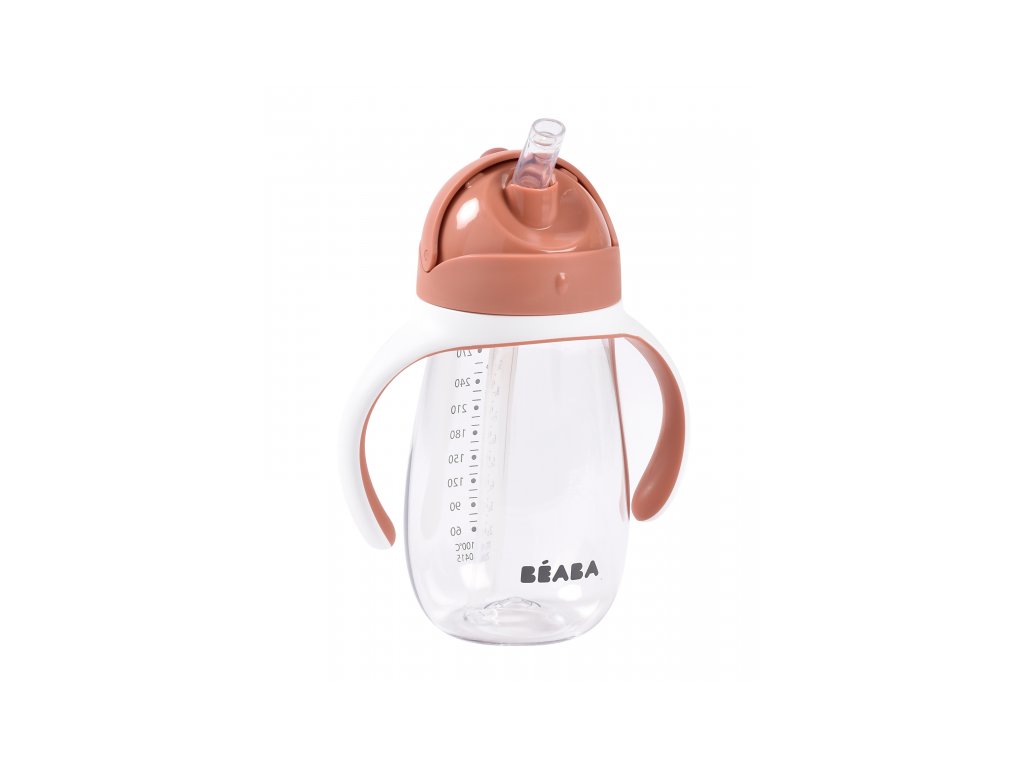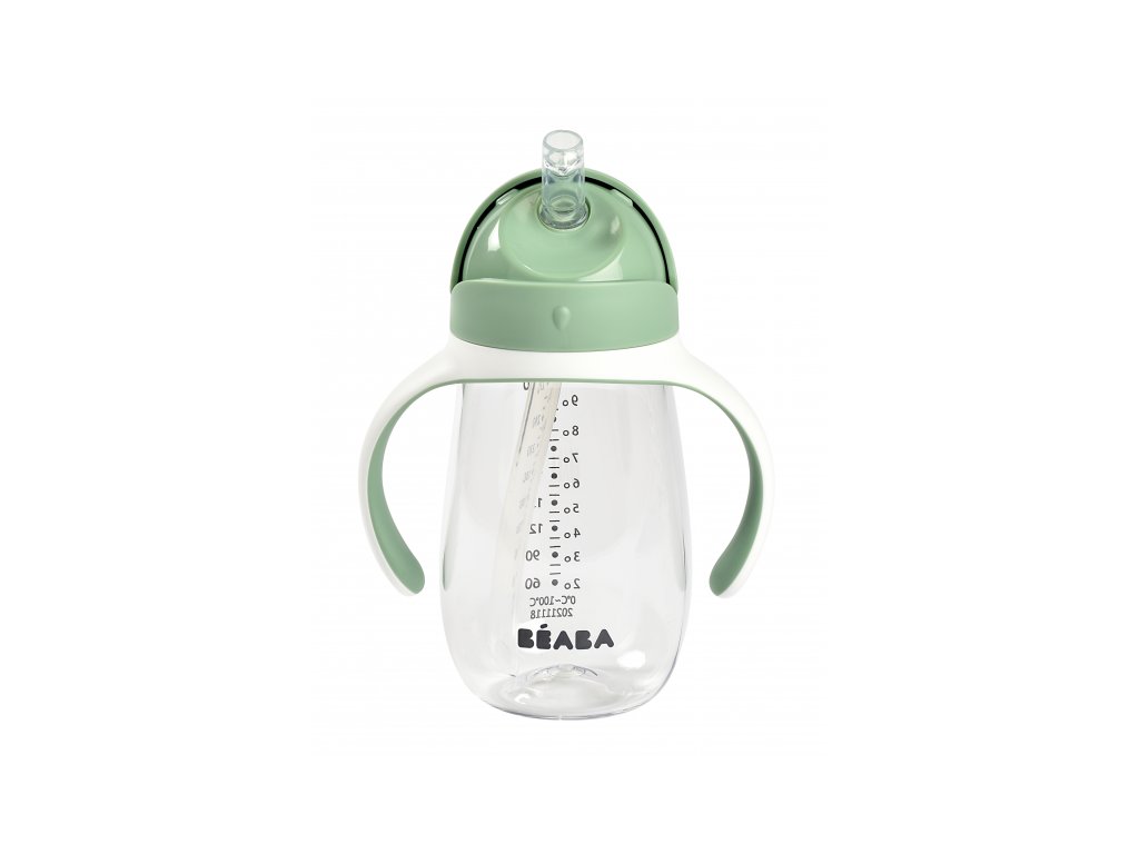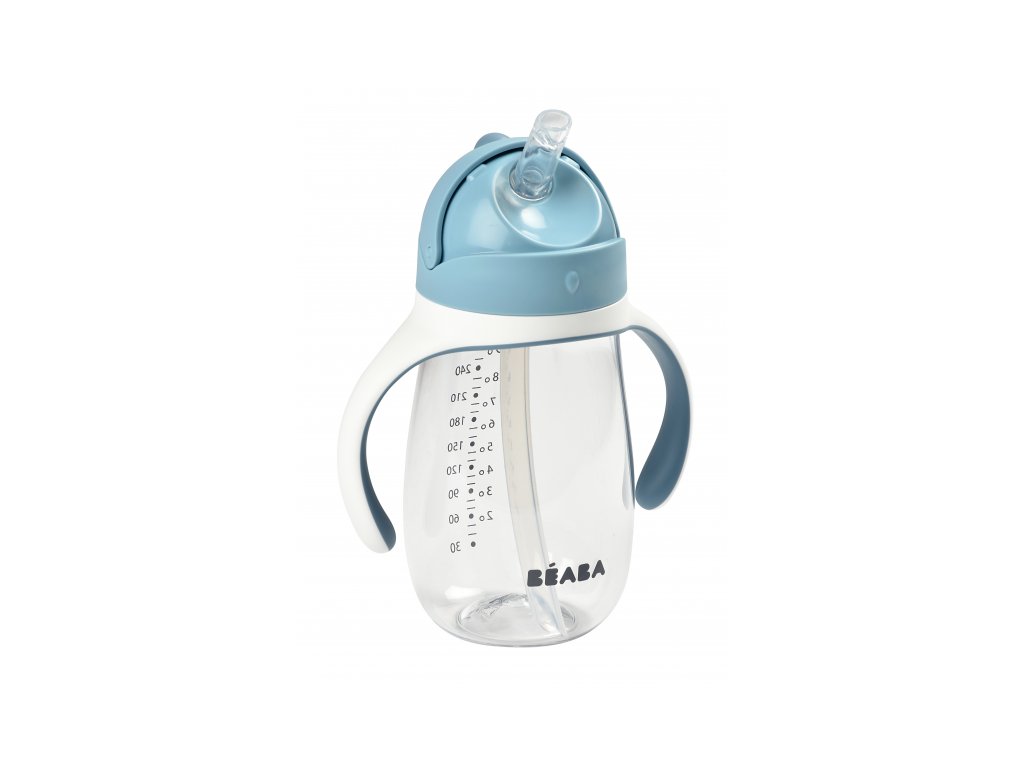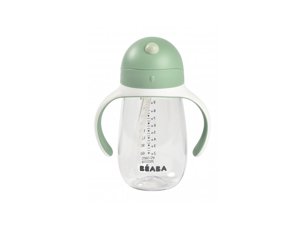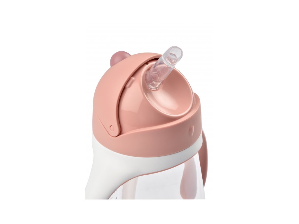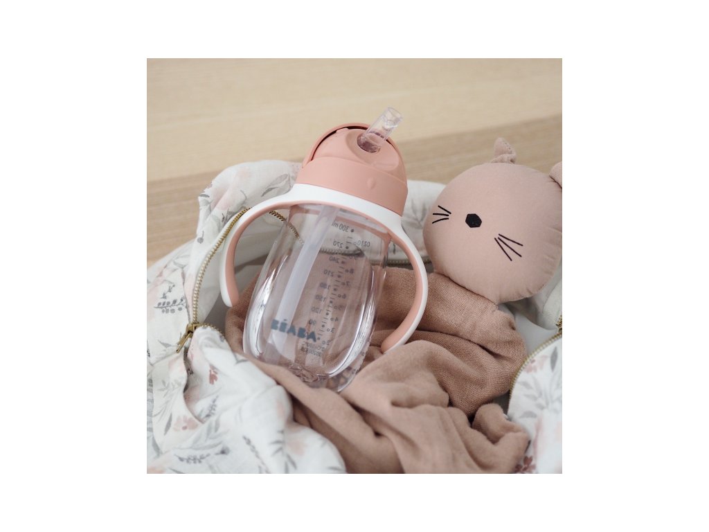 A felpattintható szilikon szívószállal ellátott bögre ideális otthoni és útközbeni használatra. A csúszó fedél és a puha, felpattintható szívószál kombinációja garantálja a biztonságos és higiénikus szállítást a táskában. Ezenkívül a szívószálban lévő szelep megakadályozza a palack tartalmának kiömlését, még akkor is, ha a fedél nincs felpattintva. A levehető fogantyúk megkönnyítik a gyermek számára a bögre tartását.