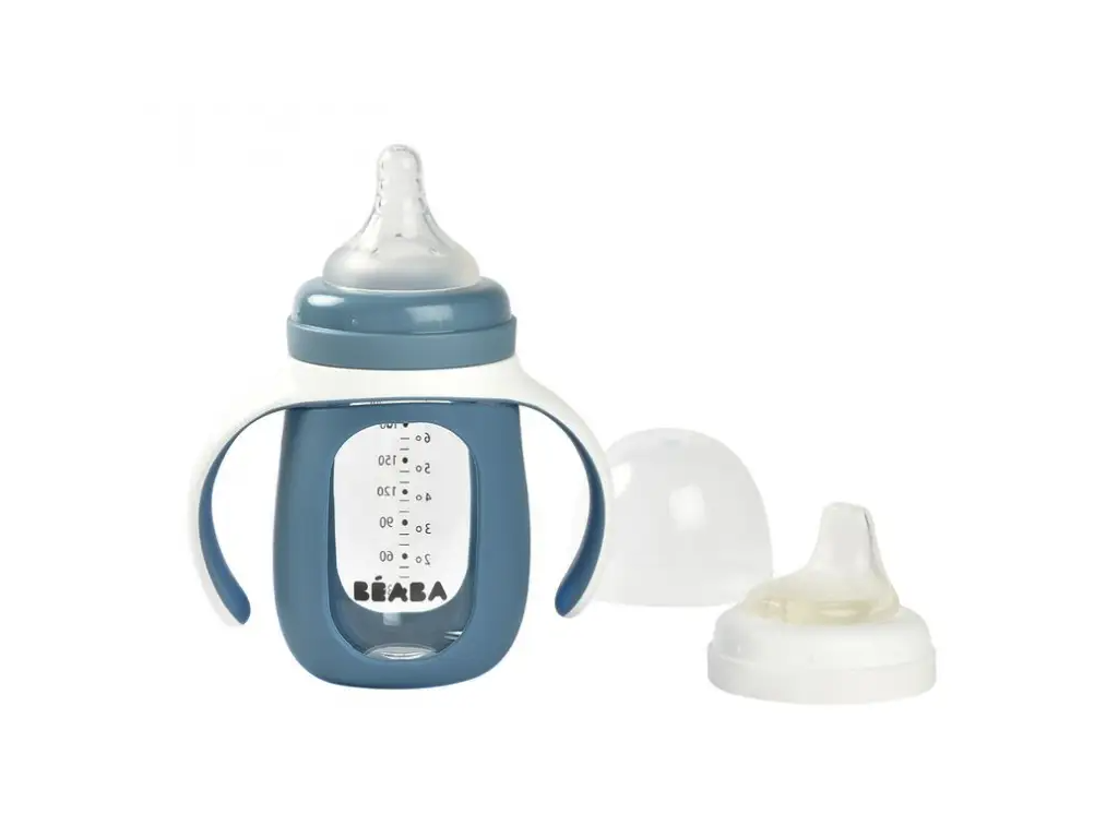 Az üveg Beaba 2 az 1-ben cumisüveg szilikon cumival és szilikon itatófejjel érkezik, hogy megkönnyítse a baba cumiról az itatófejre való átállását. A védő szilikon tok védi az üveget az ütésektől és a kicsúszástól. A levehető fogantyúk megkönnyítik a baba számára az üveg tartását. A kupak védi a cumisüveg tartalmát és tisztaságát, vagy az itatófejet.