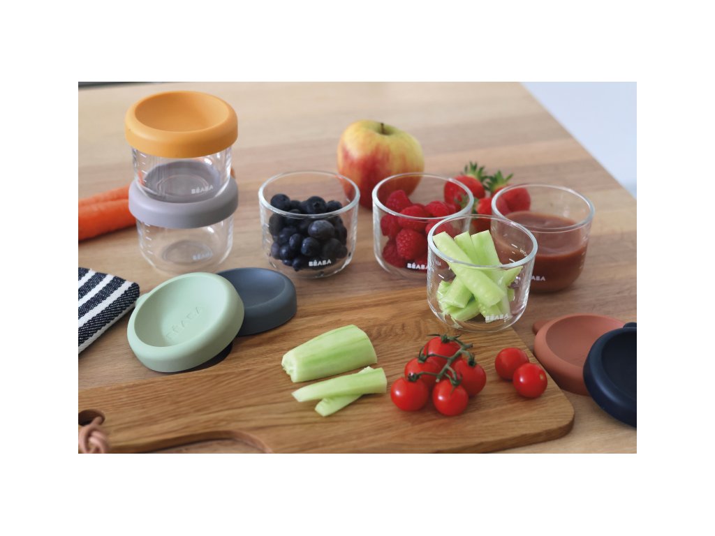 Hermetikusan zárható fedéllel ellátott üvegtégely a bébiételekhez praktikus, higiénikus és egészséges megoldás a bébiételekhez. A műanyag vagy szilikon tároló edényekkel ellentétben az üveg tároló edények alkalmasak intenzív használatra, amely során nem kopnak, nem színeződnek el és nem deformálódnak.