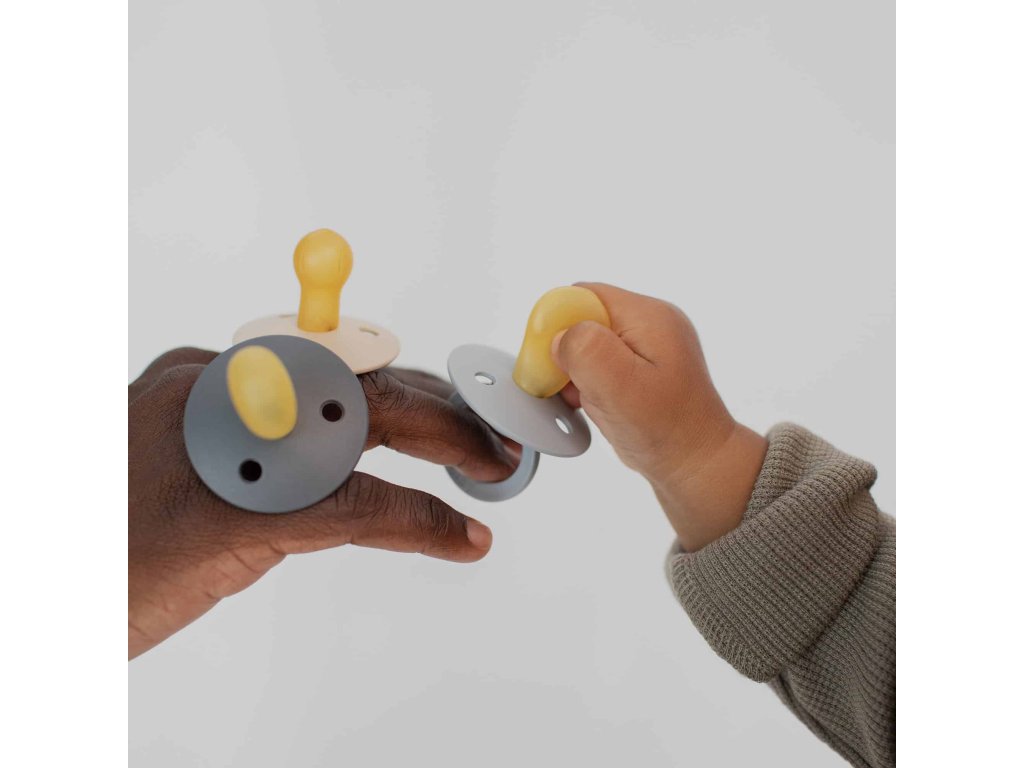 A népszerű BIBS Colour cumik most ortodontikus változatban is kaphatók – szimmetrikus vagy anatómiai formában. A BIBS meghódítja az egész világot. Egyszerű és stílusos. Ikonikus cumik, amelyeket Dániában terveztek és gyártanak 1978 óta. A minimalista skandináv dizájn és a széles színválaszték jellemző a BIBS cumikra. Minden BIBS termék garantálja a gyermektermékek legmagasabb minőségét. A szívóka 100%-ban természetes gumiból készül, amely rendkívül rugalmas és puha, ugyanakkor ellenáll a repedéseknek és a kis darabok leválásának. A cumit úgy tervezték, hogy ne irritálja a baba érzékeny bőrét. A szellőzőnyílásokkal ellátott kerek gyűrű ívelt, szinte egyáltalán nem érinti a száj körüli bőrt, így nyugodt marad, nyomok és irritáció nélkül. A puha guminak és a beépített légszelepnek köszönhetően a baba könnyen összenyomja és formálja a cumit a szájában, ami megőrzi a szájpadlás, az íny és a fogak természetes fejlődését a gyermekeknél. Miért szeretik a gyerekek és a szülők a BIBS Colour cumikat? Extra könnyű. A gyűrű speciális ívelt formájának köszönhetően minimalizálódik a cumi érintkezése a bőrrel, és nem alakulnak ki nyomok és irritációk. 3 különböző formájú szívófej közül választhat (kerek cseresznye, szimmetrikus és anatómiai) – minden babának más forma felel meg. A gyermek csak 100% -ban természetes, biztonságos anyagot szív - a Hevea fa nedvéből készült gumit. A természetes gumi kivételes íze, a gyermekek természetesen előnyben részesítik a szintetikus anyagokkal szemben. Stílusos design sokféle színben. EU-ban készült. Összetétel: Szívó rész: 100% természetes gumi Egyéb részek: élelmiszeripari minőségű polipropilén (PP). BPA-, PVC-, ftalát- és egyéb káros anyagoktól mentes. Dániában készült. A Consumer Lab Denmark tesztelte. Megfelel az EN 1400+A2 európai szabványnak. Méret: A BIBS Colour anatómiai cumik 2 méretben kaphatók. 1. méret: 0-6 hónapos korig 2. méret: 6 hónapos kortól