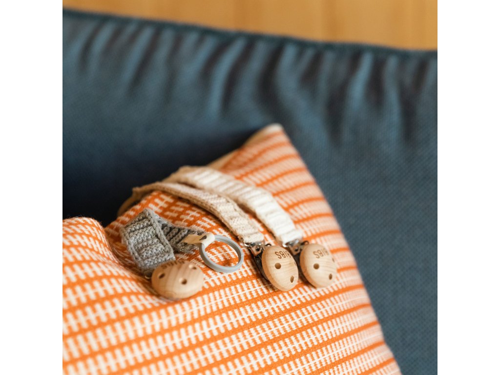 A BIBS egy népszerű dán márka, amely 1978 óta gyárt ikonikus cumikat. A cumikon kívül a BIBS a legkisebb gyermekek számára is kínál változatos, prémium termékeket minimalista skandináv dizájnban és széles színválasztékban. Minden BIBS termék garantálja a gyermektermékek legmagasabb minőségét. A modern babakelengye praktikus része a cumicsipesz. Használható otthon, a szabadban, az autósülésben, játék közben vagy séta közben, és biztosítja, hogy a cumi mindig kéznél legyen, tiszta maradjon, ne essen a földre és ne vesszen el. A BIBS kötött cumicsipeszeket a hagyományos dán minták ihlették, és 100% organikus pamut kötött anyagból készülnek. A fém rész nikkelmentes, a fa dekorációs elem pedig FSC tanúsítvánnyal rendelkezik, amely garantálja az erdőgazdálkodás fenntarthatóságát. A klipek minden típusú BIBS cumival kompatibilisek. A szülők, akik szeretnék kombinálni a dizájnt és a funkcionalitást, könnyen színben hozzáigazíthatják a csipeszeket a kedvenc BIBS cumikhoz és nyálkendőkhöz. Összetétel: 100% BIO minősített pamut. FSC minősítésű fa. Nikkelmentes fém. Tanúsítványok: Megfelel az EN 12586+A1:2011 európai szabványnak. Méret: Teljes hossza 22 cm. Használat: A cumicsipeszt akkor kell használni, amikor gyermeke ébren van és felügyelet alatt van. Csak a ruházathoz rögzíthető. Nem szabad használni, ha a gyermek kiságyban van vagy alszik. Nem használható játékként vagy rágókaként. Ne kösse a gyermek nyaka köré, és ne használja felügyelet nélkül. Minden használat előtt gondosan ellenőrizze. Az első sérülés vagy gyengülés jelére dobja ki. Soha ne hosszabbítsa meg. Soha ne rögzítse szalagokhoz, zsinórokhoz vagy laza ruhadarabokhoz.