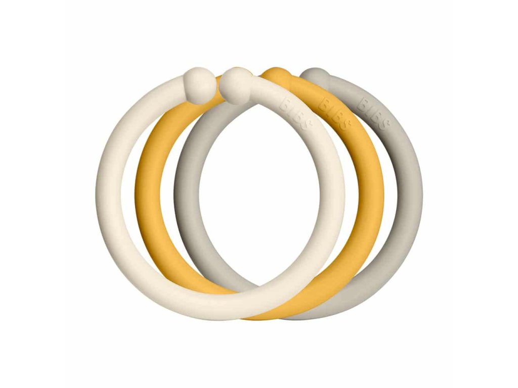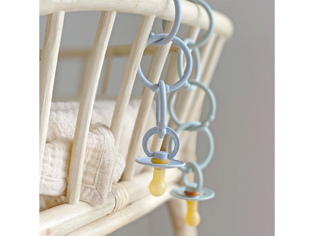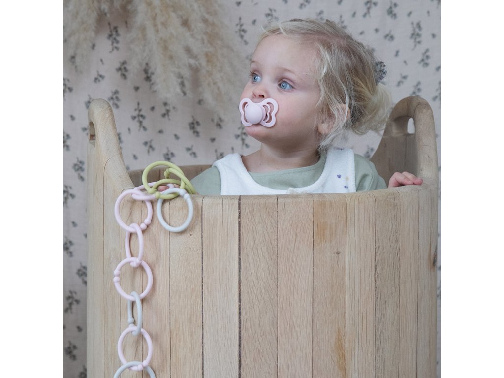 A BIBS Loops karikák szuper praktikus segédeszközök. Készítsen belőlük gyönyörű színes láncot, és akassza fel a babakocsira, az autósülésre, a kiságyra vagy a pelenkázó fölé, hogy rögzítse a játékot, cumit, pelenkát, bármit... A BIBS Loops karikák ráadásul egy érdekes játék, amely hosszú időre leköti a baba figyelmét, és fejleszti finommotorikus készségeit.A BIBS Loops karikák a legkeresettebb BIBS színekben készülnek, és nem csak praktikus segédeszközök, hanem egyben játékok is, amelyek mindig kéznél vannak, és egyben stílusos kiegészítői a babakelengyének. Dániában tervezték és gyártották. Biztonságos élelmiszeripari polipropilén (PP), 100% BPA-, PVC- és ftalátmentes. Könnyű és egyben erős anyag. EU-szabványok szerint tesztelve és tanúsítva. 3 hónapos kortól alkalmas. Tisztítsa meleg vízzel, esetleg enyhe mosószerrel. Sterilizálja forrásban lévő vízben, ne mikrohullámú sütőben vagy mosogatógépben.Méret: a karika külső átmérője kb. 5,2 cm.