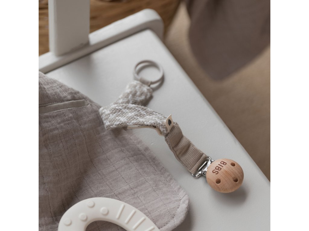A BIBS egy népszerű dán márka, amely 1978 óta gyárt ikonikus cumikat. A cumikon kívül a BIBS a legkisebb gyermekek számára is kínál változatos, prémium termékeket minimalista skandináv dizájnban és széles színválasztékban. Minden BIBS termék garantálja a gyermektermékek legmagasabb minőségét.A modern babakelengye praktikus része a cumicsipesz. Használható otthon, a szabadban, az autósülésben, játék közben vagy séta közben, és biztosítja, hogy a cumi mindig kéznél legyen, tiszta maradjon, ne essen a földre és ne vesszen el.A BIBS Paci Braid cumi klipek klasszikus retro kötött dizájnnal és skandináv hangulattal rendelkeznek. 100% organikus pamutból készültek. A fém rész nikkelmentes, a fa dekorációs elem pedig FSC tanúsítvánnyal rendelkezik, amely garantálja az erdőgazdálkodás fenntarthatóságát. A klipek minden típusú BIBS cumival kompatibilisek. A szülők, akik szeretnék kombinálni a dizájnt és a funkcionalitást, könnyen színben összehangolhatják a klipeket kedvenc cumijaikkal és a BIBS Bandana nyálkendőkkel.Összetétel:100% organikus pamut.FSC minősítésű fa.Nikkelmentes fém.Tanúsítványok: Megfelel az EN 12586+A1:2011 európai szabványnak.FSC – FSC tanúsítvánnyal rendelkező fa. Az FSC védjegy garantálja, hogy nem termelnek ki több fát, mint amennyit az erdő önmaga képes termelni, és garantálja a jó munkakörülményeket.Méret: Teljes hossza 22 cm.Használat: A cumicsipeszt akkor kell használni, amikor a gyermek ébren van és felügyelet alatt áll. Csak a ruházathoz rögzíthető. Nem szabad használni, ha a gyermek kiságyban van vagy alszik. Nem használható játékként vagy rágókaként. Ne kösse a gyermek nyaka köré, és ne használja felügyelet nélkül. Minden használat előtt gondosan ellenőrizze. Az első sérülés vagy gyengülés jelére dobja ki. Soha ne hosszabbítsa meg. Soha ne rögzítse szalagokhoz, zsinórokhoz vagy laza ruhadarabokhoz.