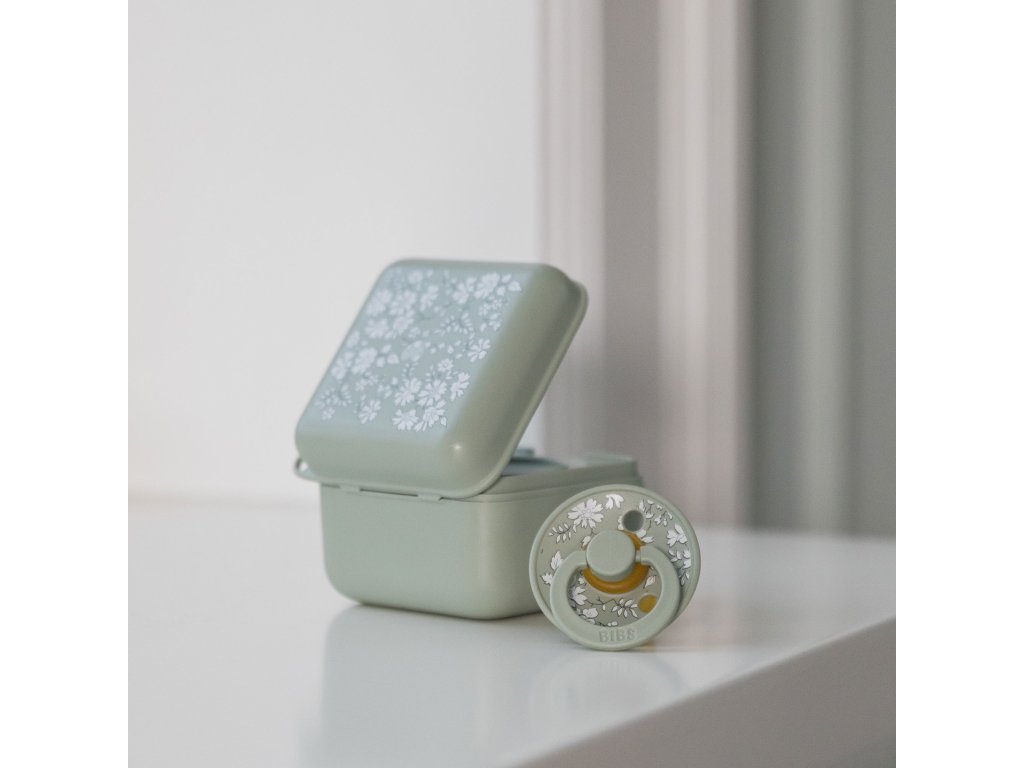 A BIBS x LIBERTY a legkedveltebb BIBS termékek exkluzív kollekciója Liberty nyomattal. A Liberty a világot extravaganciájával, időtlen eleganciájával inspirálja, és eredeti mintáit kölcsönzi luxus divatmárkáknak 1875 óta. A BIBS x LIBERTY kollekcióban egyesítettük erőinket, hogy olyan termékeket hozzunk létre Önnek, amelyek mindkét márka örökségét ünneplik. Doboz, tároló, tok, csomagolás, ... egyszerűen egy segédeszköz, amely megvédi a cumit a szennyeződéstől, amikor éppen nincs rá szükséged. De nem csak ennyi... A BIBS cumitartó doboz egyben sterilizáló doboz is a szilikon cumik mikrohullámú sütőben történő sterilizálásához, vagy egy praktikus doboz minden aprósághoz, amely kéznél szeretne lenni, bárhol is van. Mivel biztonságos, élelmiszeripari anyagból készült, alkalmas apró rágcsálnivalók tárolására is. A praktikus szilikon pántnak köszönhetően a BIBS cumisdobozt a táskádra, a babakocsira, az ágyra vagy az autósülésre rögzítheted. Betét nélkül akár 3 cumi is elfér benne. Betéttel 1 cumi és egy cumicsipesz fér el benne. Az egyik oldalon a betét a kerek formájú cumikhoz készült, mint például a BIBS Colour, DeLux vagy Boheme, a másik oldalon pedig a pillangó formájú cumikhoz alkalmas, mint például a BIBS Supreme, Couture, Infinity. Szilikon cumi sterilizálására használható mikrohullámú sütőben. 100%-ban biztonságos, élelmiszeripari anyagból készült, ezért a doboz apró harapnivalók tárolására is alkalmas. Dániában tervezték és gyártották. A képen látható cumi nem tartozék. Tanúsítványok: Megfelel az EN 15284, EN 1186-01, EN 1186-03, EN 1186-14 európai szabványoknak. Útmutató a cumik BIBS dobozban történő sterilizálásához: Adjon két evőkanál vizet a cumisdobozhoz, és tegye bele a cumit. Helyezze a dobozt a mikrohullámú sütőbe kb. 60 másodpercre, maximum 800 W-on. A hőmérséklet nem haladhatja meg a 100°C-ot. Tartsa be a mikrohullámú sütő gyártójának utasításait. A cumi kivétele előtt hagyja a dobozt 2 percig hűlni. Javasoljuk, hogy mikrohullámú sütőben csak szilikon cumikat sterilizáljon, természetes gumiból készült cumikat ne. Legyen óvatos! Sterilizálás közben a terméket gyermekektől elzárva kell tartani. Méret: kb. 7,5 x 7,2 x 5 cm.