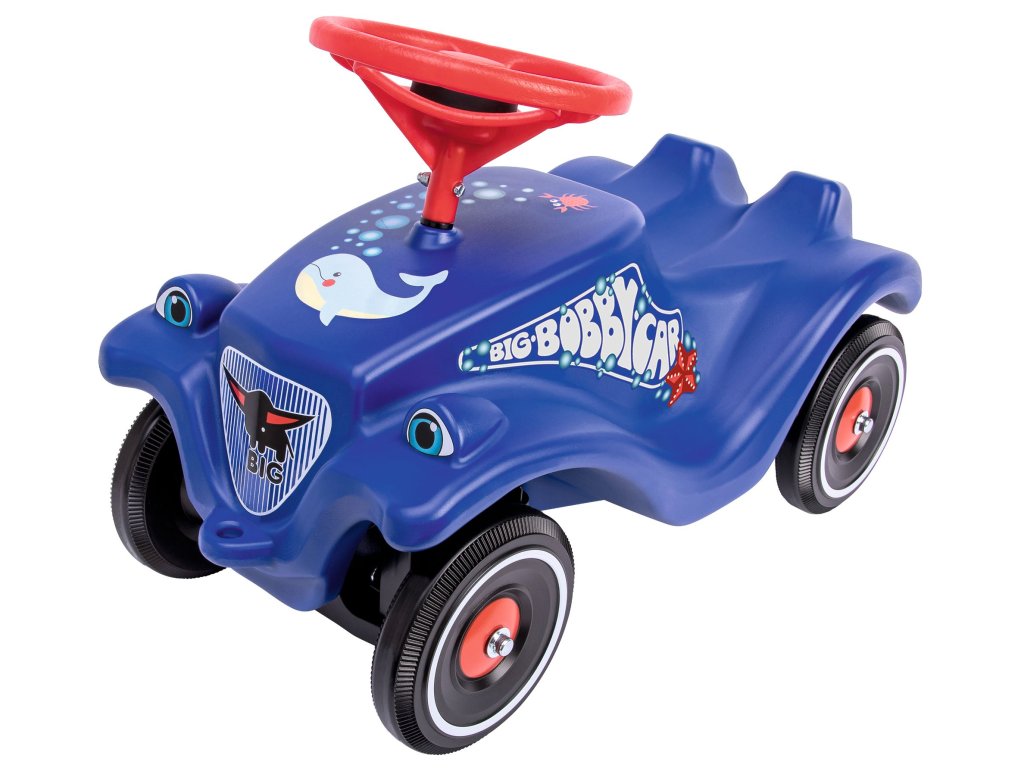 Ergonomikus ülésű, robusztus, kék színű lábbal hajtós autó, óceánt ábrázoló matricákkal. Kormány mechanikus dudával. Méretek: 58 x 30 x 38 cm. Max. terhelhetőség 50 kg. Súly: 3,6 kg.