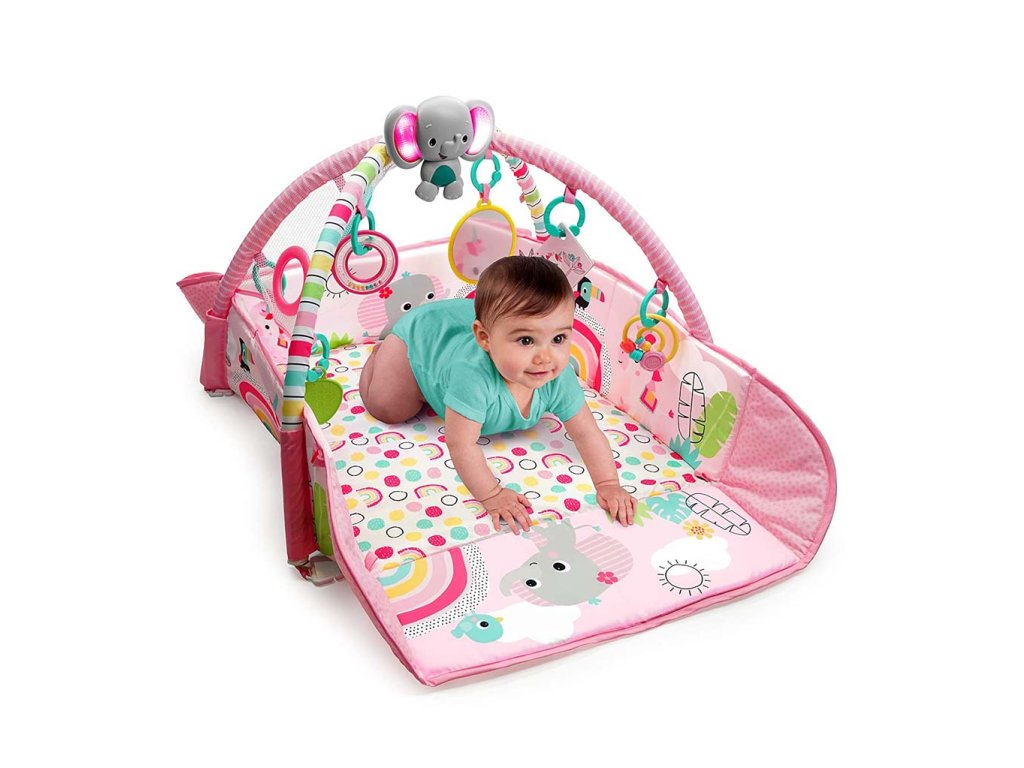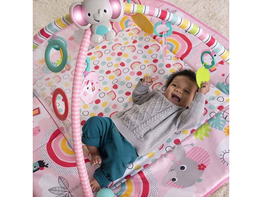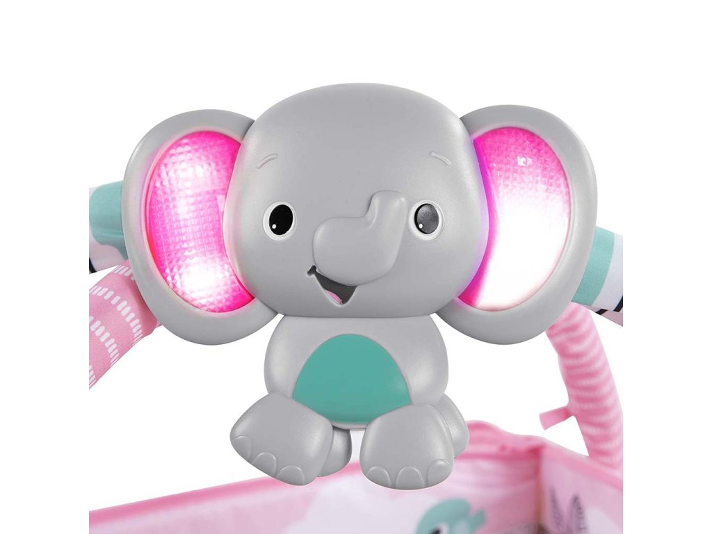 Amikor a gyermek felnő, maga is gyakorolhatja a motoros készségeket azáltal, hogy a labdákat a tetőről ejti le, vagy gurítja, vagy ide-oda adogatja a labdákat! A kisebb babák számára a játszószőnyeg teljesen kiteríthető, ahol a baba időt tölthet a hátán fekve, és játszhat a játékhídon lévő játékokkal, vagy a hasán fekve játszhat velük a párnával megtámasztva, amely szintén a tartozék. A vidám elefánt világít és több mint 20 percig zenél, és természetesen magával viheti utazásra is.