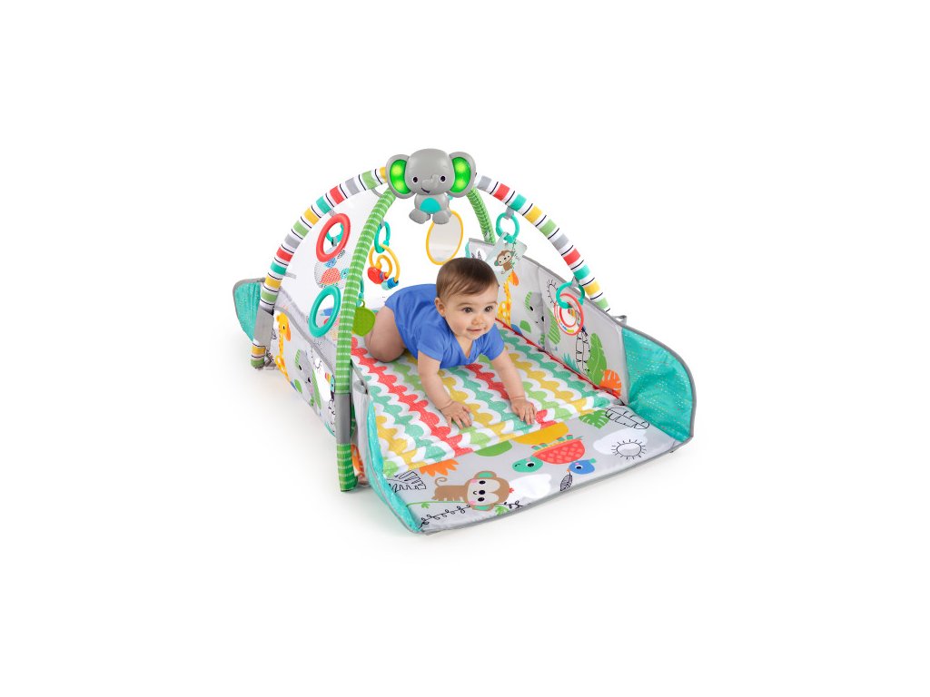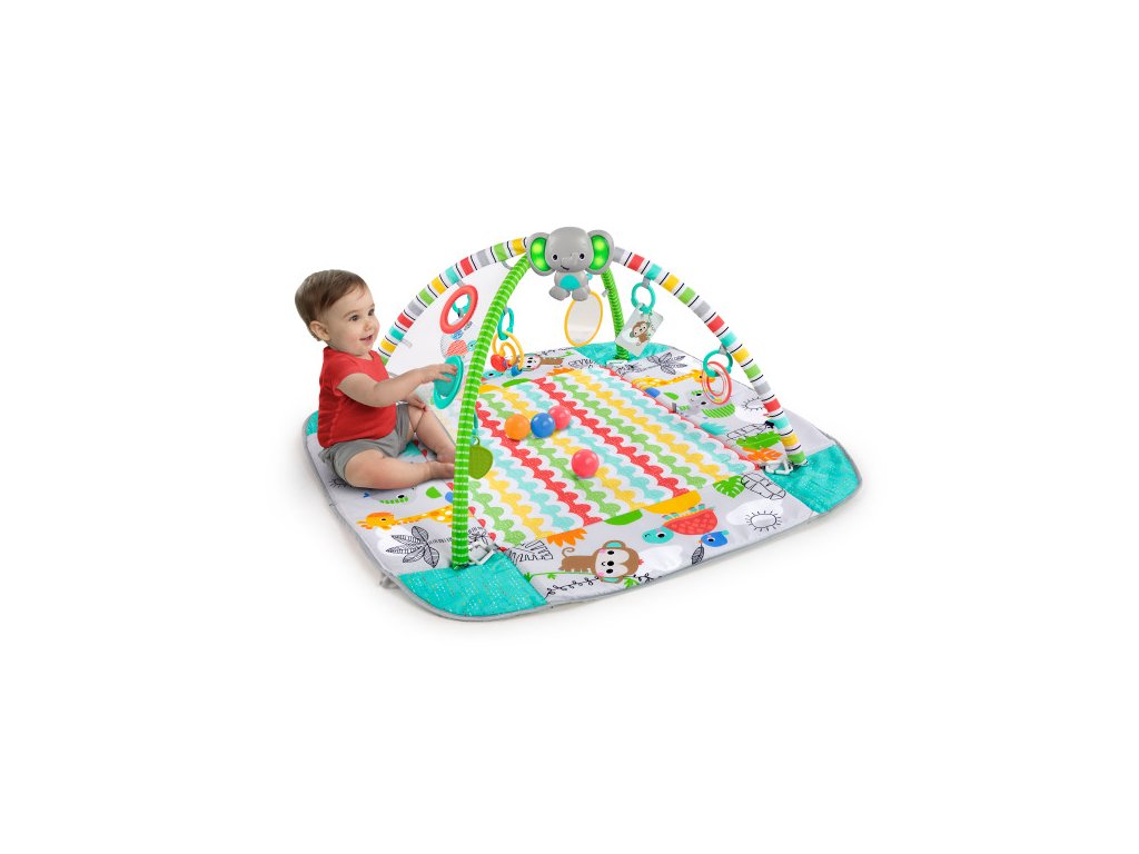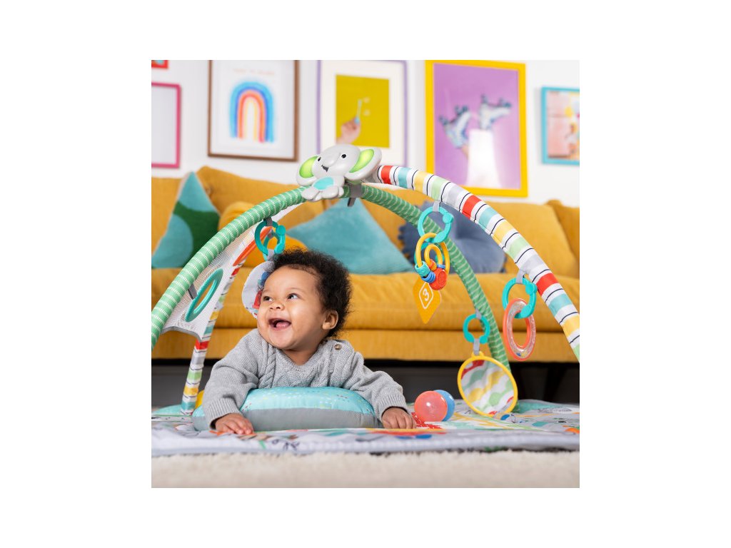 Amikor a gyermek felnő, maga is gyakorolhatja a motoros készségeket azáltal, hogy a labdákat a tetőről ejti le, vagy gurítja, vagy ide-oda adogatja a labdákat! A kisebb babák számára a játszószőnyeg teljesen kiteríthető, ahol a baba időt tölthet a hátán fekve, és játszhat a játékhídon lévő játékokkal, vagy a hasán fekve játszhat velük a párnával megtámasztva, amely szintén a tartozék. A vidám elefánt világít és több mint 20 percig zenél, és természetesen magával viheti utazásra is.