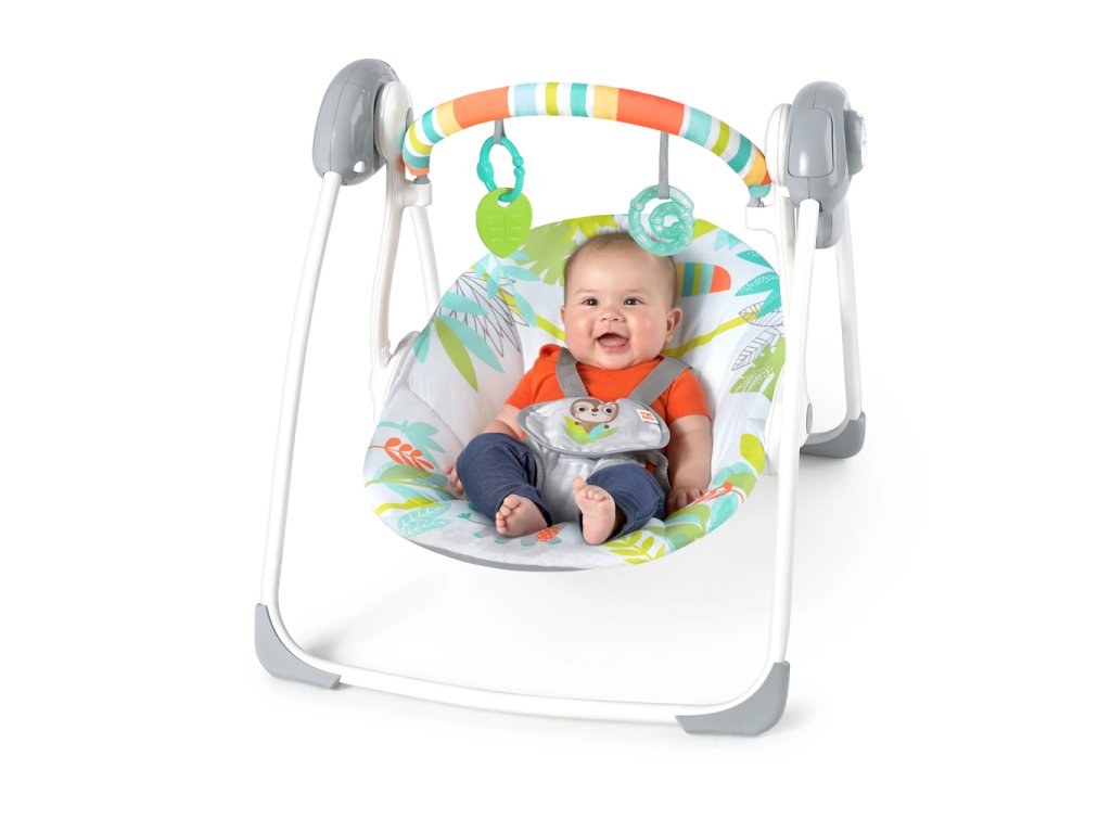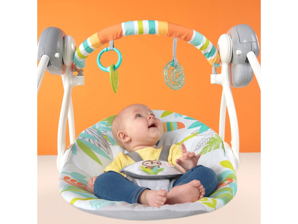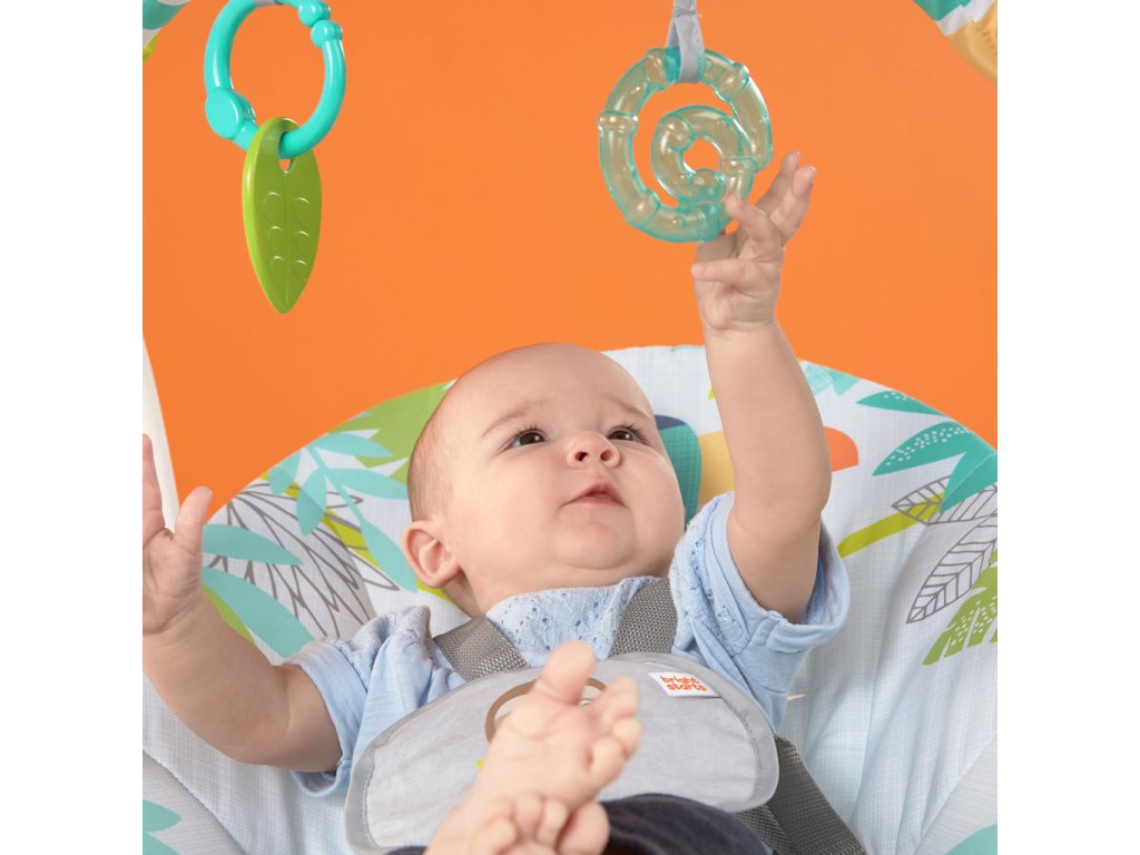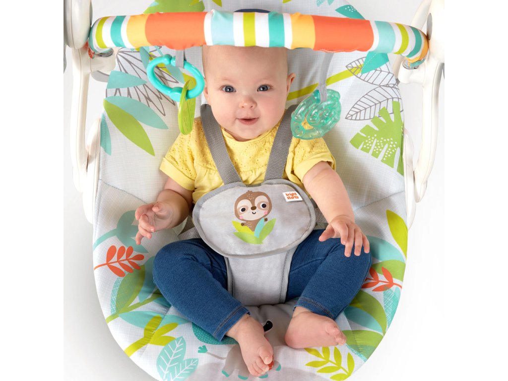 A Bright Starts Rainforest Vibes hordozható hintája a legvadabb hely a ringatózásra és a játékra! A háttámla 2 pozícióba dönthetőségének köszönhetően a baba megtalálja a számára legkényelmesebb pozíciót. A két természet ihlette játék, a vidám dzsungel design és a lajhár barát minden egyes pillanatban társaságot nyújtanak a babának a hintában.