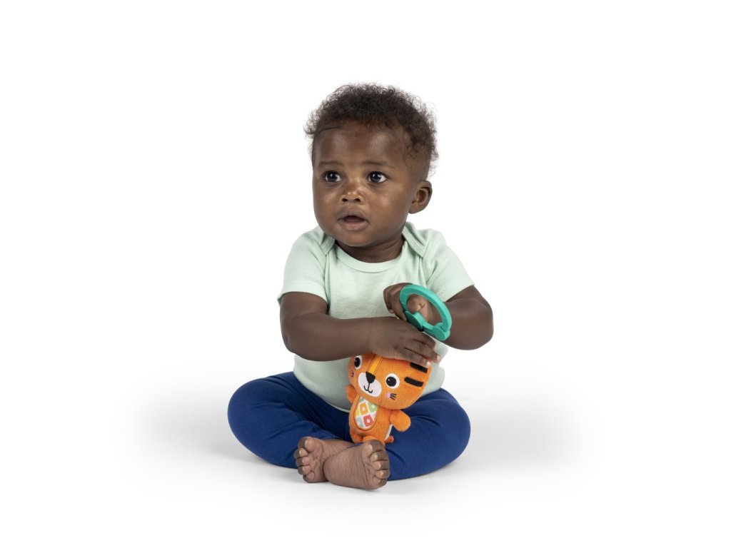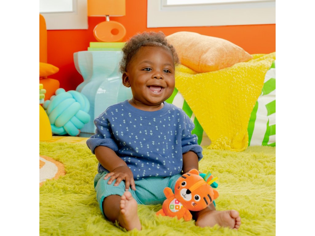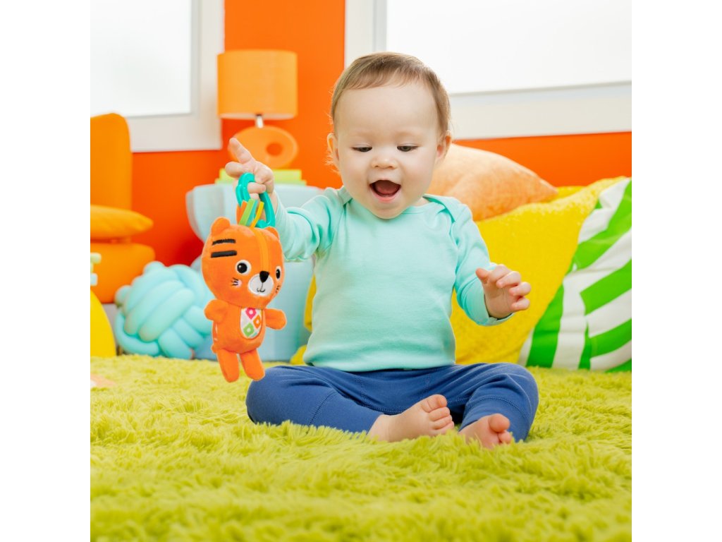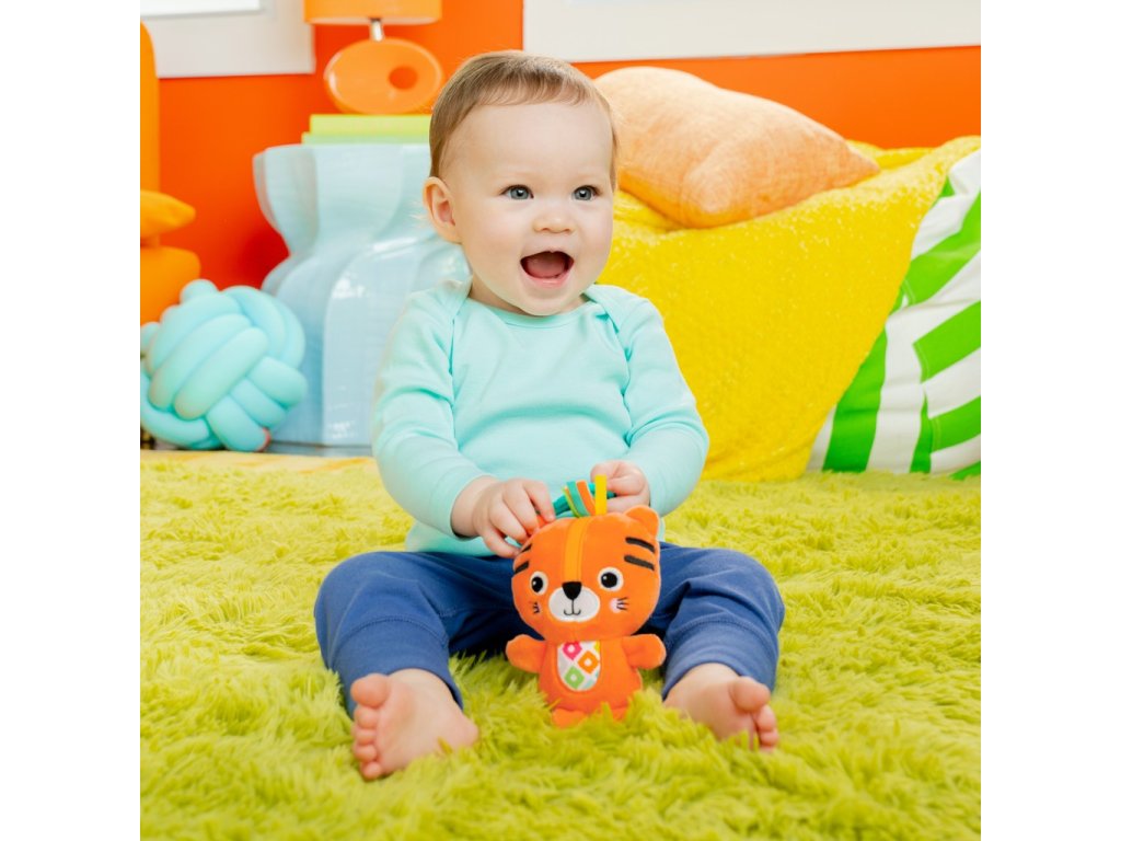 A tigris alakú csörgőt gyermeke biztosan imádni fogja. A színes és hanghatások arra késztetik, hogy kinyúljon és elkapja új tigris barátját. A babák reagálnak a színes mintákra, a vegyes anyagokra, a puha szövetekre és a rejtett csengőkre, amelyek minden rázáskor serkentő hangokat adnak ki.