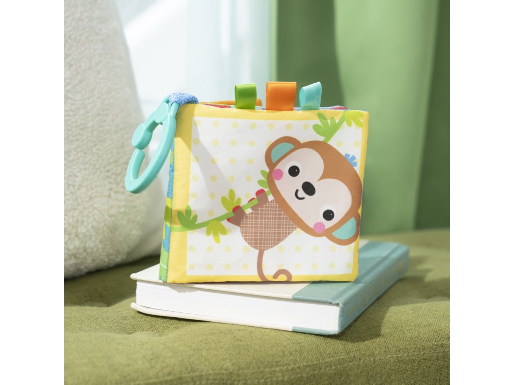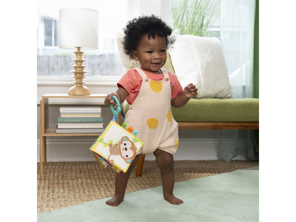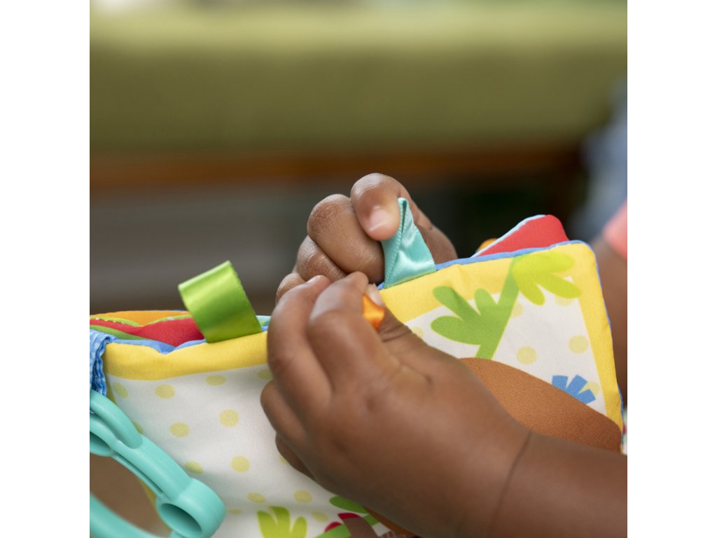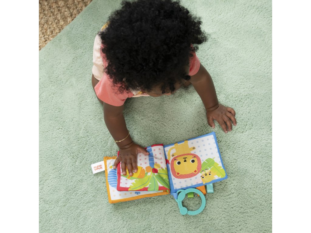 A baba első oldalai kalanddá válnak a Safari Buddies-szal – egy puha, susogó könyvvel! Ez az érzékszervi játék szórakoztató módon segíti a gyerekeket a szafari állatainak felfedezésében, miközben támogatja a hallás, a látás és a tapintás fejlődését. Minden oldal színes illusztrációkat tartalmaz olyan állatokról, mint a majom, oroszlán, elefánt, lajhár, zsiráf és leopárd, amelyek megtanítják a gyerekeket az új formák felismerésére és az állatok elnevezésére. A susogó oldalak szórakoztató visszajelzést adnak nyomáskor, a különböző textúrájú szalagok pedig tovább stimulálják a tapintást. A praktikus C-gyűrűnek köszönhetően a könyv könnyen rögzíthető babakocsira, autósülésre vagy játékívre – ideális játék utazáshoz!
