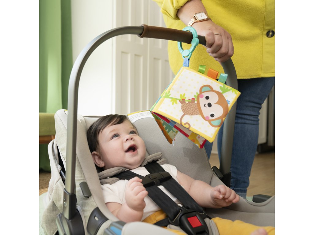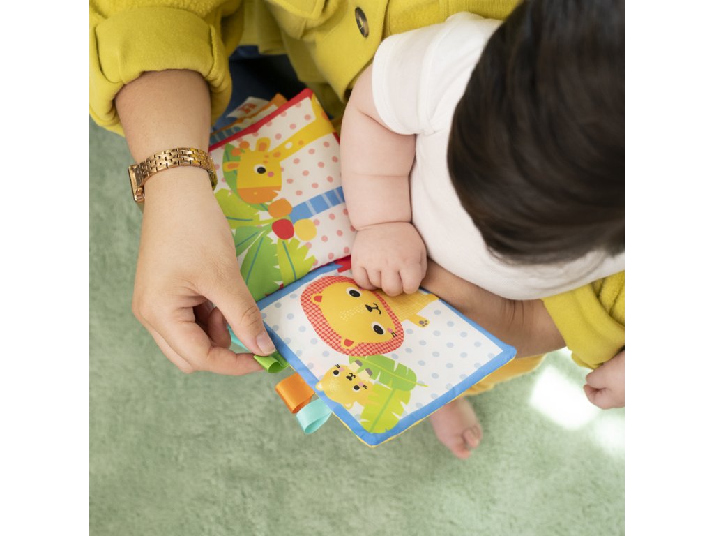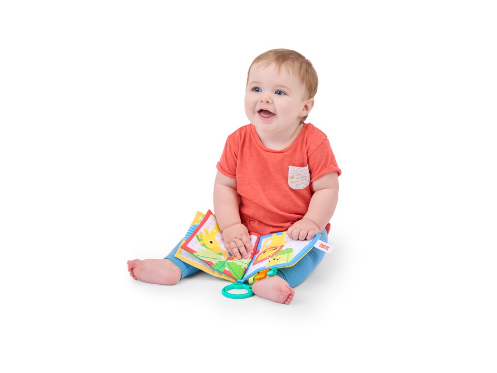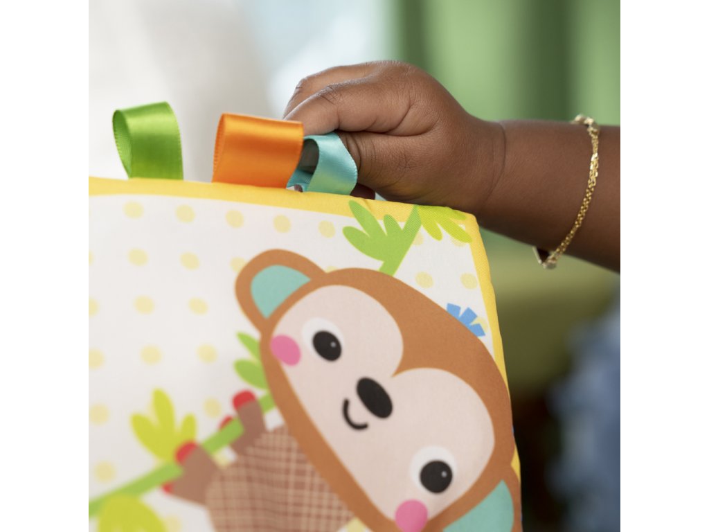 A baba első oldalai kalanddá válnak a Safari Buddies-szal – egy puha, susogó könyvvel! Ez az érzékszervi játék szórakoztató módon segíti a gyerekeket a szafari állatainak felfedezésében, miközben támogatja a hallás, a látás és a tapintás fejlődését. Minden oldal színes illusztrációkat tartalmaz olyan állatokról, mint a majom, oroszlán, elefánt, lajhár, zsiráf és leopárd, amelyek megtanítják a gyerekeket az új formák felismerésére és az állatok elnevezésére. A susogó oldalak szórakoztató visszajelzést adnak nyomáskor, a különböző textúrájú szalagok pedig tovább stimulálják a tapintást. A praktikus C-gyűrűnek köszönhetően a könyv könnyen rögzíthető babakocsira, autósülésre vagy játékívre – ideális játék utazáshoz!