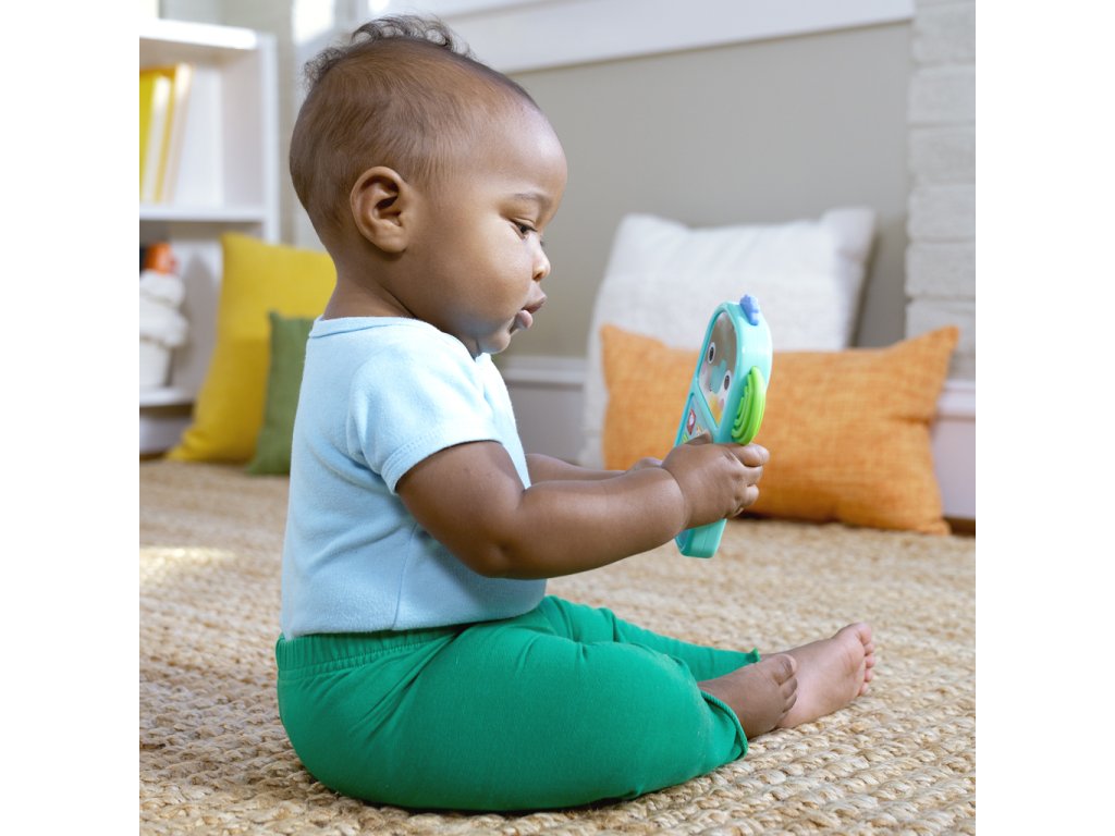 - Támogasd az érzékszervi felfedezést az elefánt texturált füleivel és az önfelismerést a tükrön keresztül, imádnivaló világító arcokkal