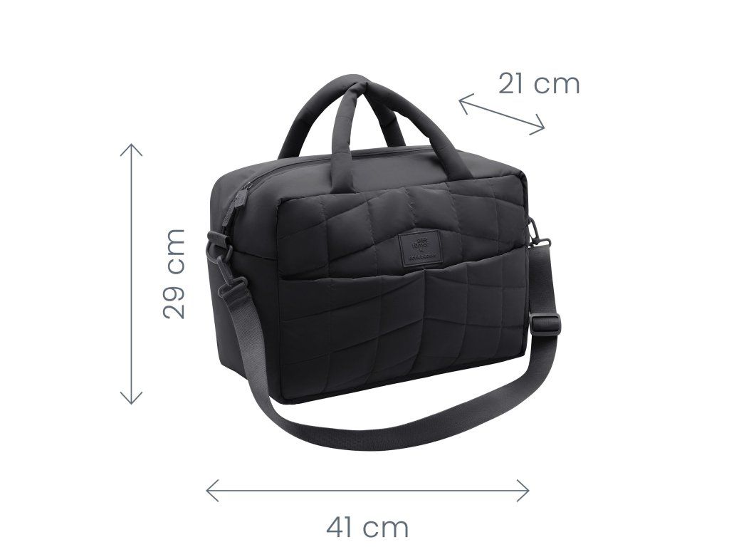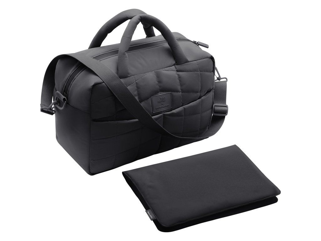 A táska része egy praktikus pelenkázó lap is. A táskát egyszerűen rögzítheti a babakocsihoz, vagy a vállán hordhatja – ideális sétákhoz, kirándulásokhoz és közös tevékenységekhez.