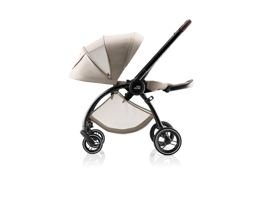 A babakocsi ülése menetiránnyal szemben vagy háttal is elhelyezhető, így a szülők szemkontaktust tarthatnak a gyermekkel, vagy lehetővé tehetik számára a környezet megtekintését. Az állítható háttámla és lábtartó, valamint az összes kerék felfüggesztése kényelmes utazást biztosít még egyenetlen terepen is. A nagyméretű napellenző védi a gyermeket a naptól és a széltől.