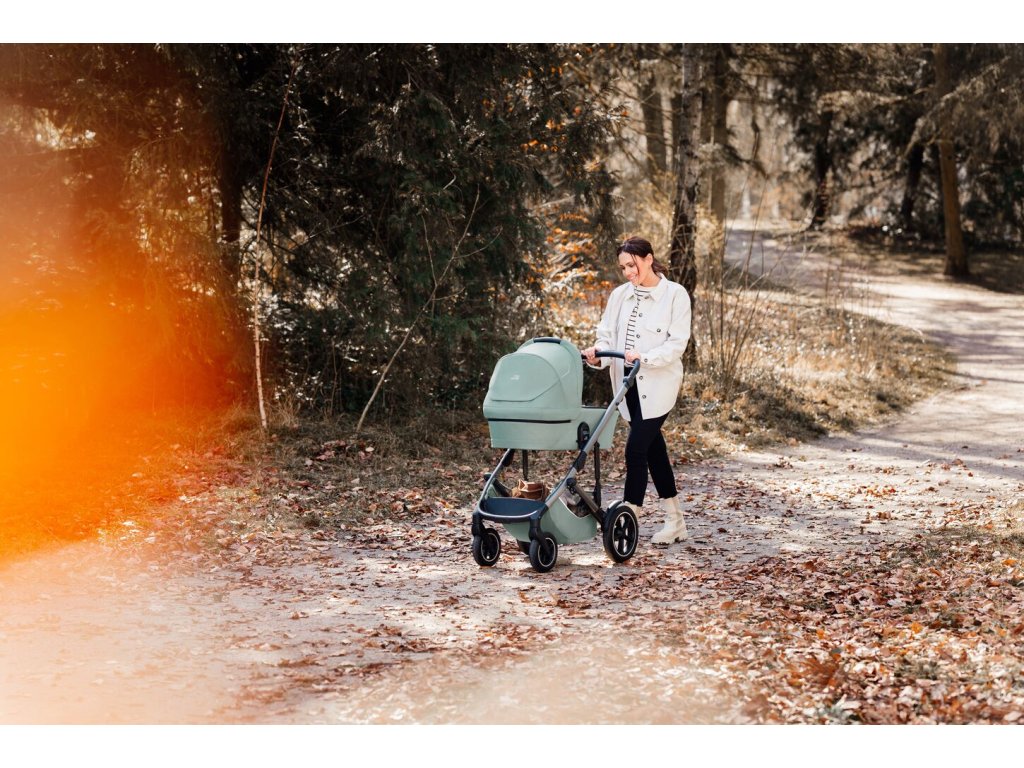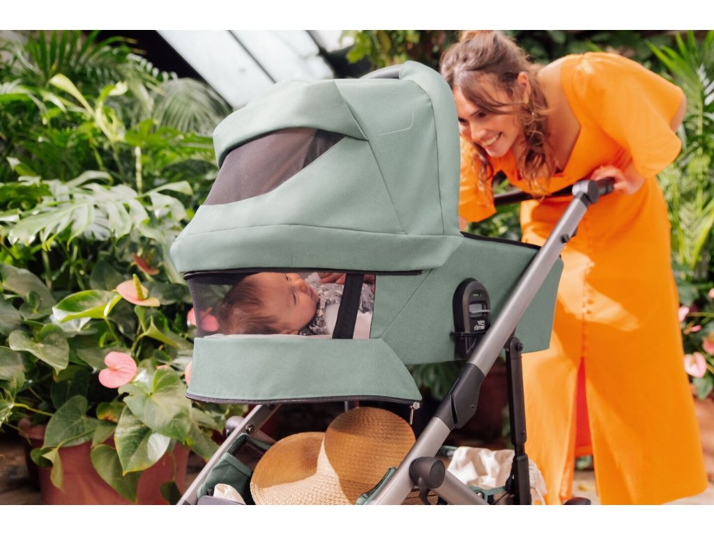 A babád minden oldalról védve lesz, hogy nyugodtan alhasson. A hőmérsékletet halkan szabályozhatod – a szellőzőnyílás mágnessel nyílik, így nincs zavaró tépőzár. A cipzáras lábtartó lehetővé teszi, hogy finoman és kényelmesen kivegye a gyermeket a babakocsiból anélkül, hogy teljesen ki kellene gombolnia. És ha hordozni kell a mózeskosarat, elég egy kézzel megnyomni a memóriagombot, és simán felemelheti az egész könnyű mózeskosarat.