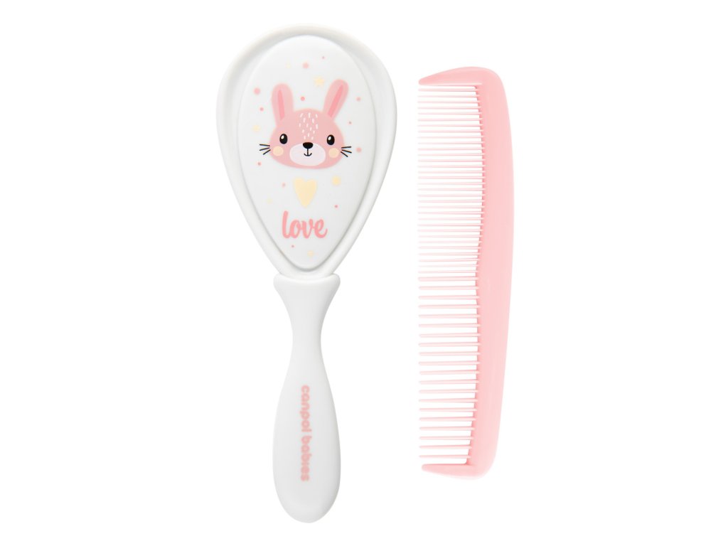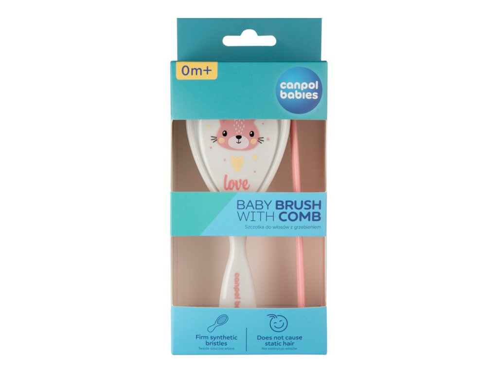 Canpol babies Baba hajkefe és fésű CUTE ANIMALS rózsaszín