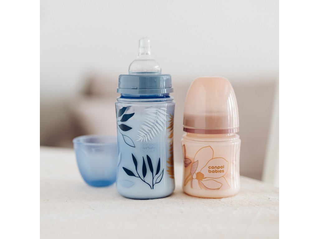 A Canpol babies EasyStart GOLD széles szájú, hasfájás elleni cumisüveg biztonságos és modern anyagból készült. Könnyű, tartós és teljesen átlátszó. A világos és pontos skála lehetővé teszi, hogy ellenőrizze a baba által elfogyasztott mennyiséget, a széles nyílásnak köszönhetően pedig a cumisüveg könnyen tisztítható és feltölthető.