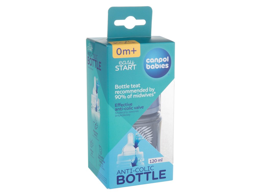 A GOLD kollekcióból származó, 120 ml-es Canpol babies EasyStart anti-kolikus cumisüveget a baba pocakjának igényeit szem előtt tartva tervezték. A speciális antikolikos szelep megakadályozza a légbuborékok felhalmozódását a tejben, ami a megfelelő etetési pozícióval kombinálva hatékonyan kiküszöböli a hasi diszkomfortot.