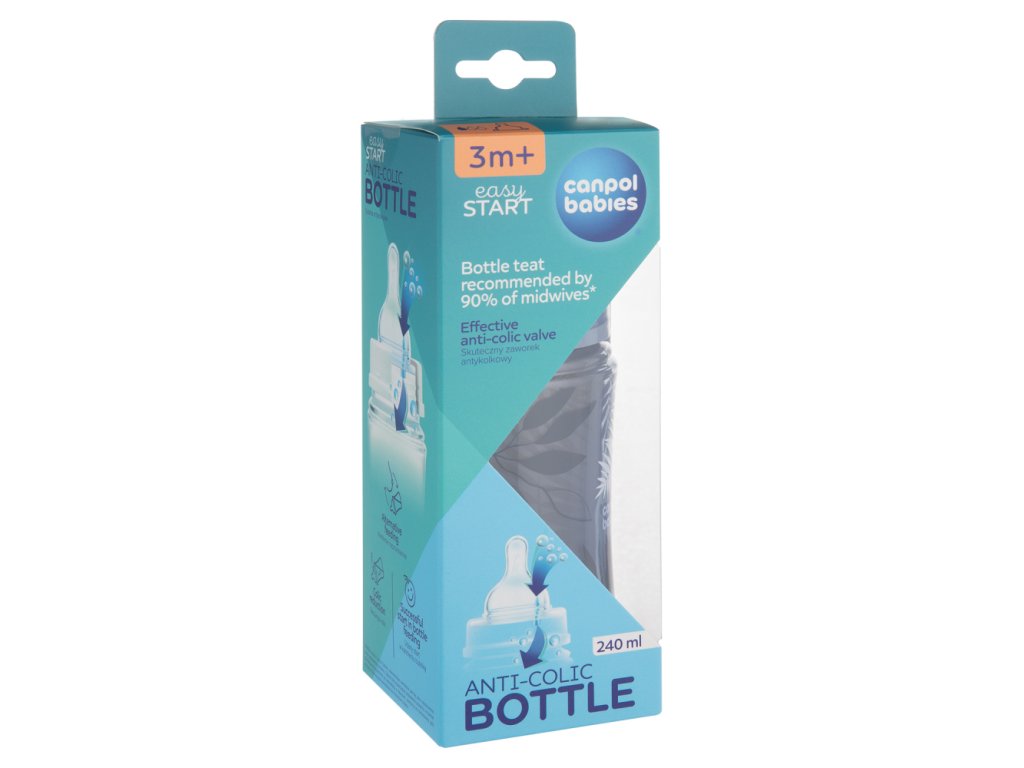 A Canpol babies EasyStart GOLD kollekciójába tartozó, 240 ml-es antikolikos cumisüveg a baba nyugodt pocakját szem előtt tartva készült. A speciális antikolikos szelep megakadályozza a légbuborékok felhalmozódását a tejben, ami a megfelelő etetési pozícióval kombinálva hatékonyan kiküszöböli a hasi diszkomfortot.