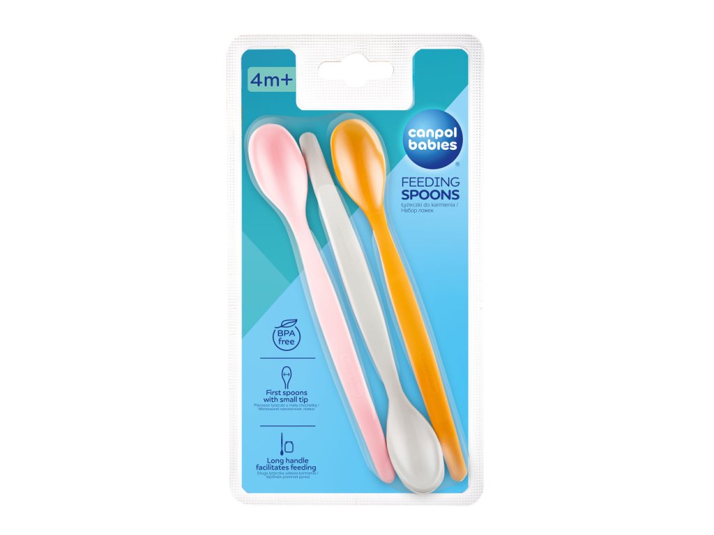 Elérkezett az ideje, hogy elkezdje a gyermeket szilárd étellel táplálni? Az első etetőkanál készlet ideális az új ízekkel és az első ételekkel való kalandozáshoz. A kanalak speciális formája megkönnyíti a gyermek számára az étel felvételét, a meghosszabbított nyél pedig kényelmet biztosít az etetés során, és megkönnyíti az étel kivételét az edény aljáról. A lekerekített szélek nem irritálják a gyermek finom ínyét, így a kanalak alkalmasak lesznek az első önálló étkezési kísérletekre is. A készlet 3 különböző színű, matt felületű kanalat tartalmaz, 4 hónaposnál idősebb gyermekek számára.