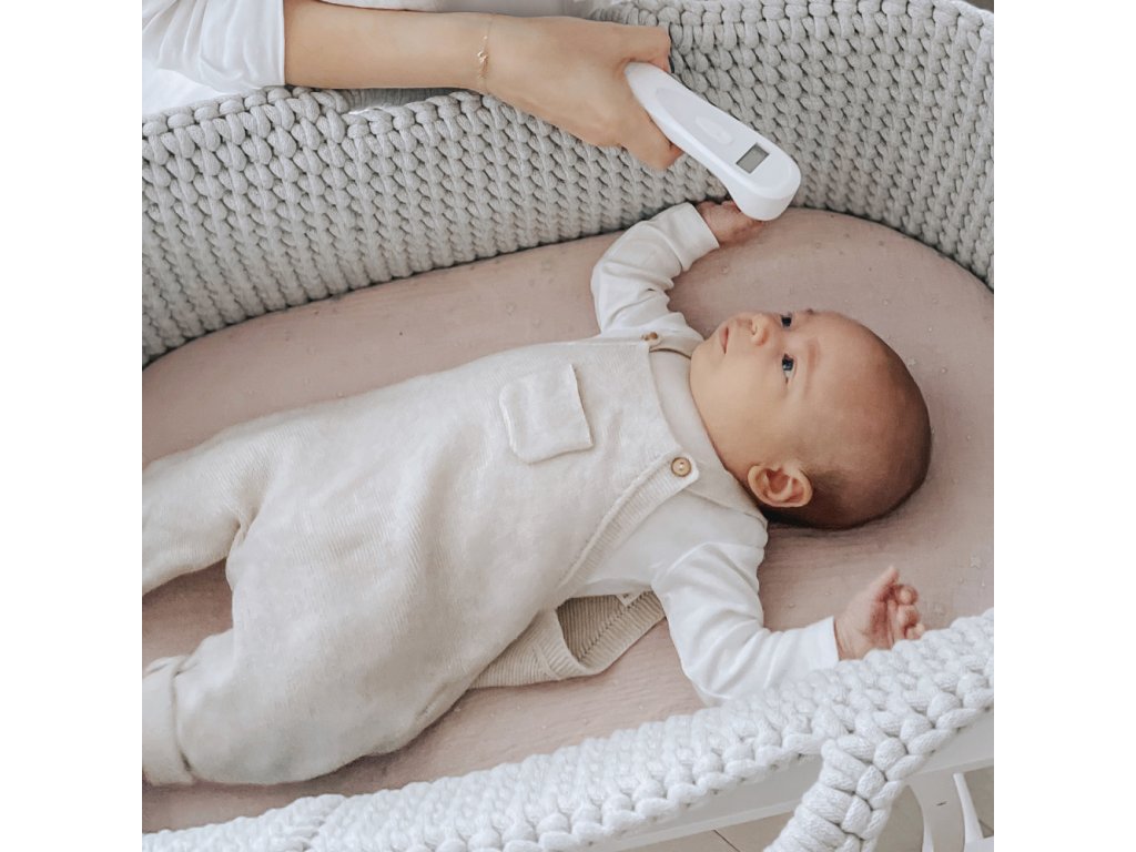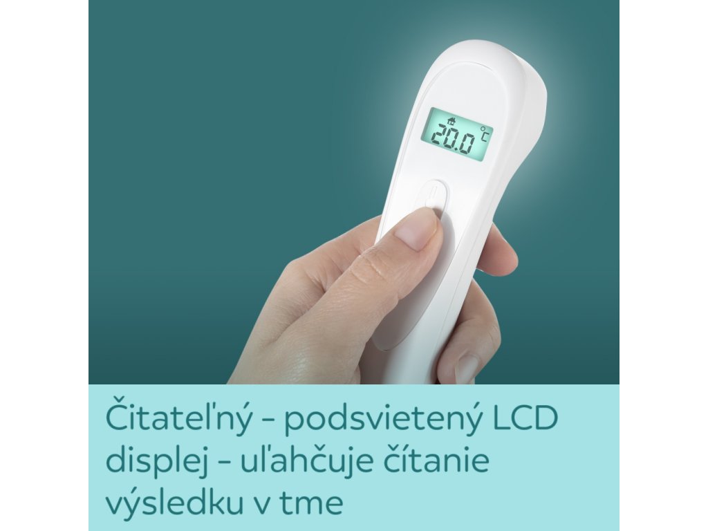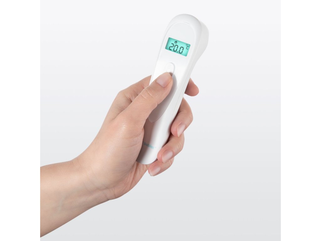 Az EasyStart érintés nélküli infravörös hőmérő garantálja a gyors és pontos hőmérsékletmérést, amikor csak szüksége van rá. A pontos eredmények eléréséhez mindössze egy másodperc szükséges. A készülék kijelzi a hőmérsékletet, és színnel jelzi azt. Ideális a legkisebb gyermekek számára. Lehetővé teszi a diszkrét mérést alvás közben, a jól olvasható, háttérvilágítású kijelző pedig megkönnyíti a hőmérő használatát éjszaka is. A beépített memóriának köszönhetően könnyedén megtekintheti az utolsó 25 mérés eredményeit. A hőmérő használható a test, tárgyak, folyadékok és a környezet hőmérsékletének mérésére. Szükség esetén könnyedén ellenőrizheti a babaétel vagy a fürdőkád vizének hőmérsékletét. A kényelmes, praktikus forma és az intuitív kezelés garantálja a kényelmes használatot. Minden házipatika nélkülözhetetlen része.