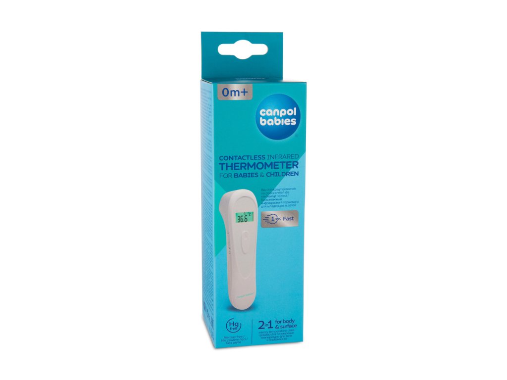 A Canpol babies EasyStart érintés nélküli infravörös hőmérője gyors és pontos hőmérsékletmérést garantál, amikor csak szüksége van rá. A pontos eredmények eléréséhez mindössze egy másodperc szükséges. A készülék egyidejűleg értelmezi a hőmérsékletmérést, és színnel jelzi azt. Ideális a legkisebb gyermekek számára. Lehetővé teszi a diszkrét mérést alvás közben, az áttekinthető, háttérvilágítású kijelző pedig megkönnyíti a hőmérő használatát éjszaka is. A beépített memóriának köszönhetően könnyen megtekintheti az utolsó 25 mérés eredményeit. A hőmérő használható a test és a tárgyak, folyadékok, ételek és a környezet hőmérsékletének mérésére. Szükség esetén tehát könnyedén ellenőrizheti a babakaja vagy a fürdővíz hőmérsékletét. A kényelmes, praktikus forma és az intuitív kezelés garantálja a kényelmes használatot. Minden házi patika és babakelengye nélkülözhetetlen terméke.