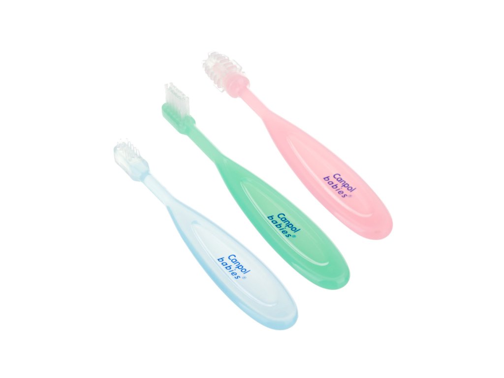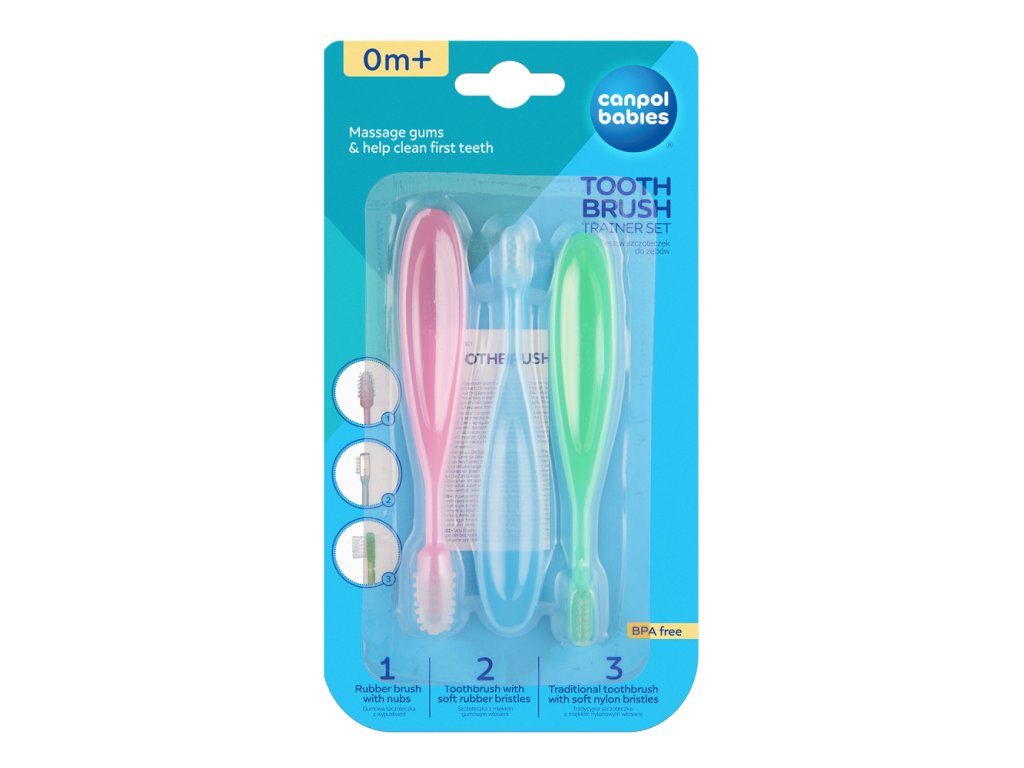 Praktikus kefekészlet a mindennapi ápoláshoz, amely évekig szolgálja majd a gyermeket. Masszázskeféből, gumikeféből az első fogak tisztításához és nylon sörtéjű keféből áll, amelyet idősebb gyermekek számára terveztek. A készlet lehetővé teszi az íny és az első fogak gyengéd tisztítását anélkül, hogy károsítaná azokat.