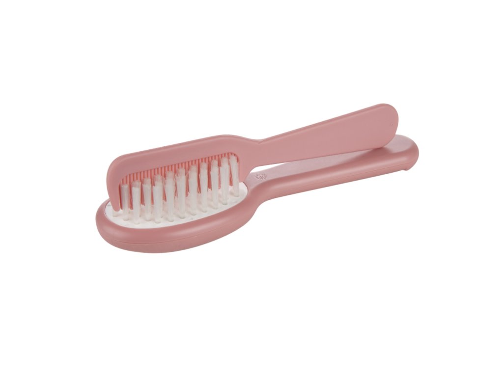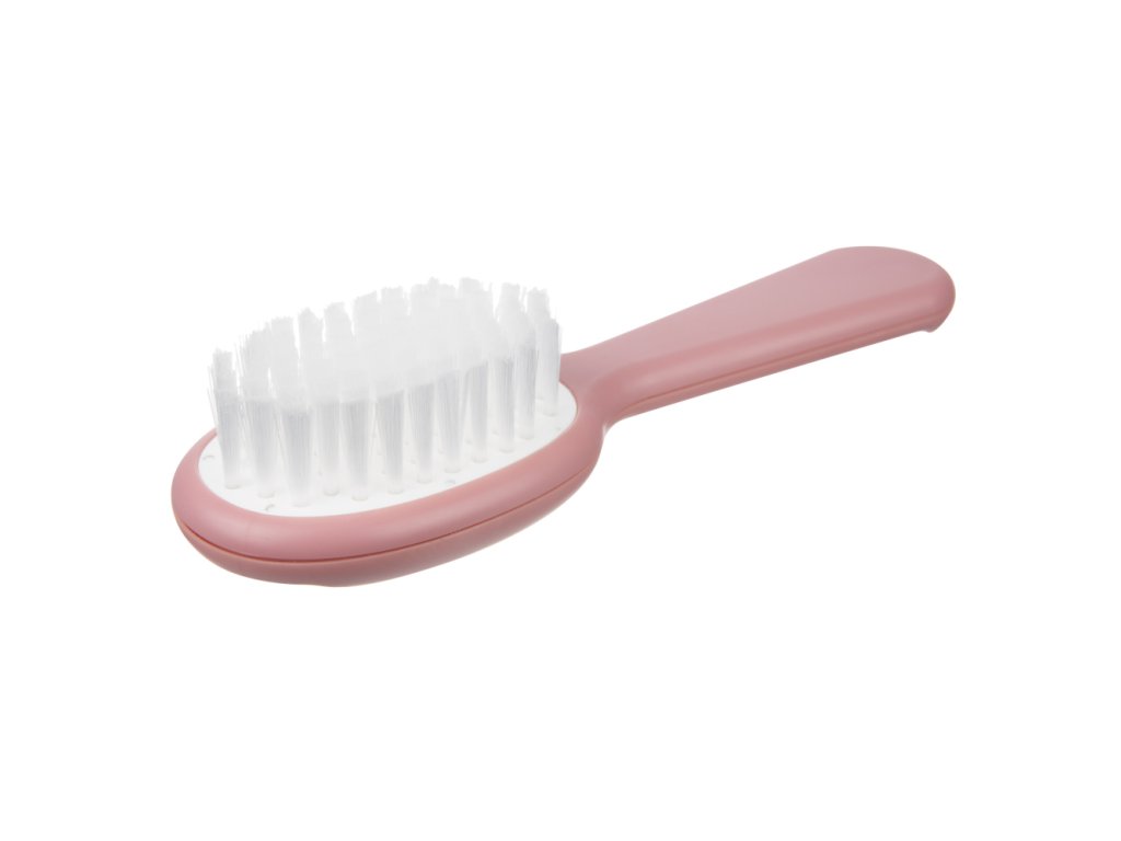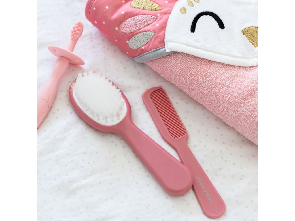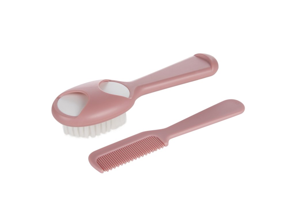 A gyermek hajkefe és fésű tökéletes készletet alkot a baba első hajszálainak fésüléséhez és a fejbőr masszírozásához. A fésű fogai lekerekítettek, hogy ne irritálják a baba érzékeny bőrét, míg a kefe szintetikus sörtéi garantálják a puha babahaj biztonságos és kellemes ápolását. Az eszközök ergonomikus formája megkönnyíti a kényelmes használatot, a speciális fésűtartó pedig segít a rend fenntartásában. A készlet három pasztellszínben kapható.