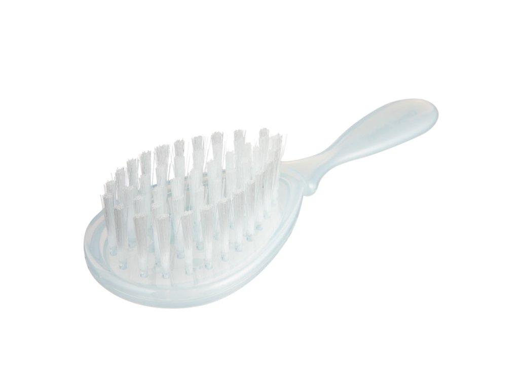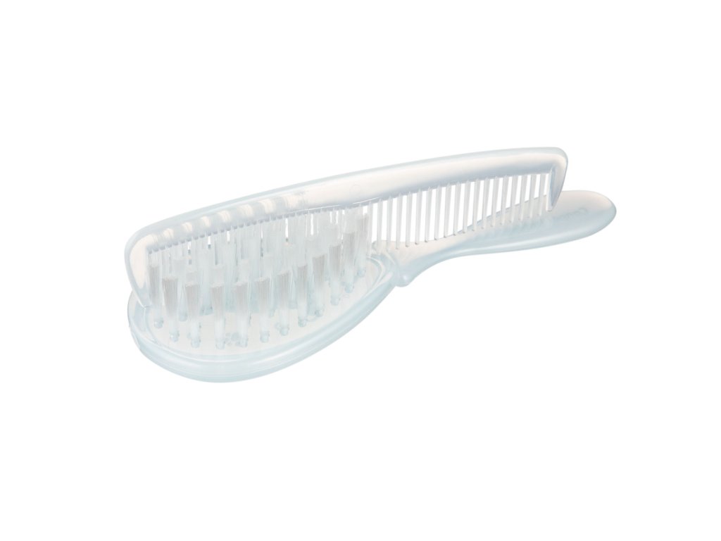 Hajkefe fésűvel a gyermekek hajának mindennapi ápolásához. A fésű lekerekített fogakkal rendelkezik, amelyek nem irritálják a baba érzékeny bőrét. A kemény műszálkefék gyengéden masszírozzák a baba fejét anélkül, hogy a haj feltöltődne. A készlet többféle színben kapható.