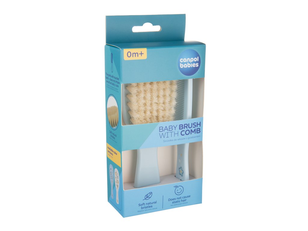 Canpol babies Gyerek kefe és fésű finom, természetes sörtékkel NEWBORN BABY kék