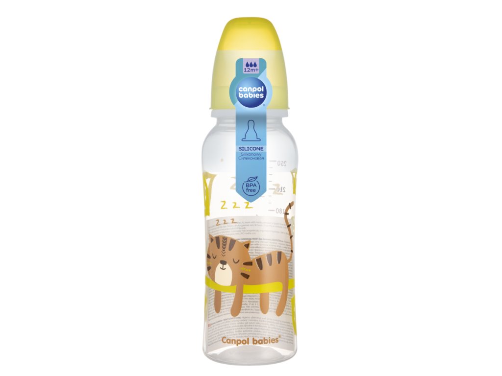 Keskeny nyakú palack biztonságos polipropilénből. Könnyű, átlátszó, testre szabott formája és skálája van. A palack mosogatógépben mosható és gőzzel sterilizálható. Lehetővé teszi a szoptatás és a cumisüvegből való táplálás kombinálását. A cumisüveg szilikon univerzális cumival rendelkezik 12m+. Űrtartalom 250 ml.