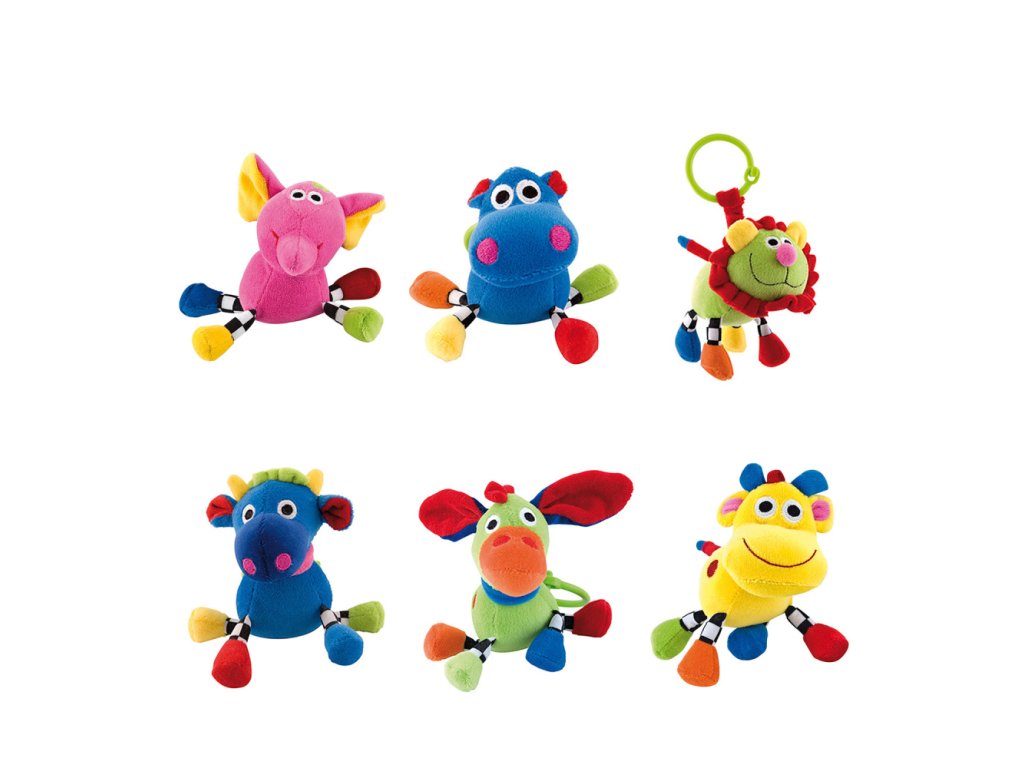 A Bolondos állatkák puha játék biztosan felkelti minden gyermek figyelmét. Puha, kellemes tapintású velúrból készült. Kényelmes fogantyúval rendelkezik, amely lehetővé teszi a babakocsira vagy kiságyra való rögzítést. A játék serkenti a vizuális-hallási koordináció és a gyermek motoros fejlődését. Újszülött kortól ajánlott.