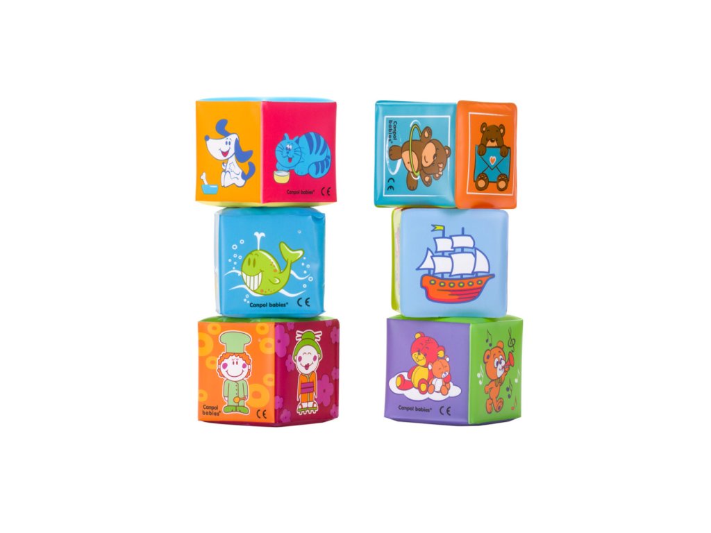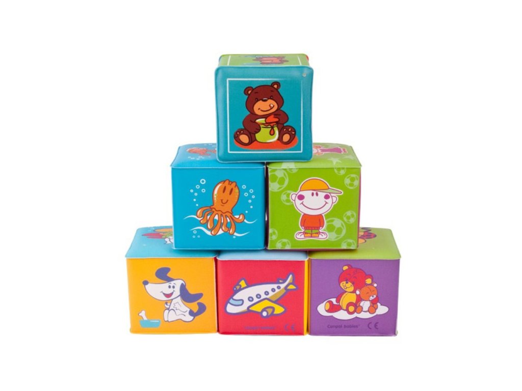 A puha, színes, meseképes, sípoló kockák minden gyermek figyelmét felkeltik. Tökéletes az első szavak tanulásához. A kockák javítják a látást és a hallást, valamint a gyermek koordinációját. A játék könnyen tisztítható. Biztonságos, kiváló minőségű anyagokból készült. Fürdőjátékként is használható. 6 hónaposnál idősebb gyermekek számára készült.