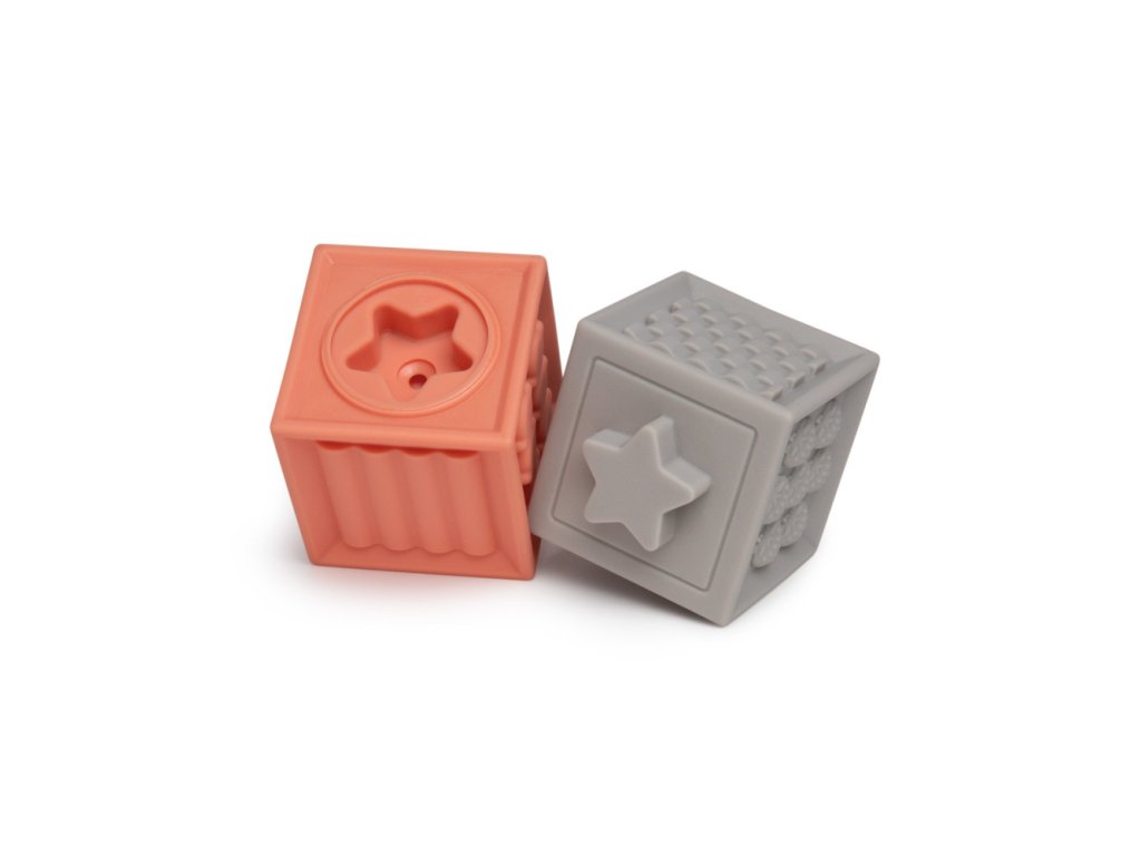 A színes szenzoros kockák 6 hónapos kortól alkalmasak a gyermekek számára. Ezek a kockák ideálisak kisebb és nagyobb gyermekek számára is. Érdekes formáiknak és színeiknek köszönhetően serkentik a gyermek vizuális-hallási és motoros koordinációjának fejlődését. A kockáknak domború falaik vannak, amelyek lehetővé teszik az összekapcsolásukat. Minden kocka különböző formákat, állatokat és számokat is tartalmaz a nagyobb gyermekek számára. Megnyomáskor hangokat adnak ki. Szerkezetüknek köszönhetően rágókaként is használhatók. Kiváló első ajándék.