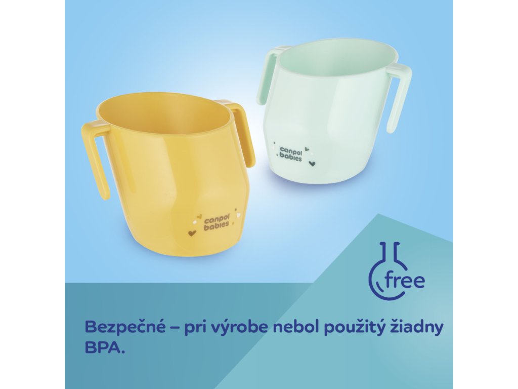 Edzőpohár fogantyúkkal, amelyet azoknak a gyermekeknek terveztek, akik önállóan tanulnak inni. A pohár 180 ml-es, és 12 hónaposnál idősebb gyermekek számára készült. BPA-mentes és egyéb káros anyagoktól mentes.