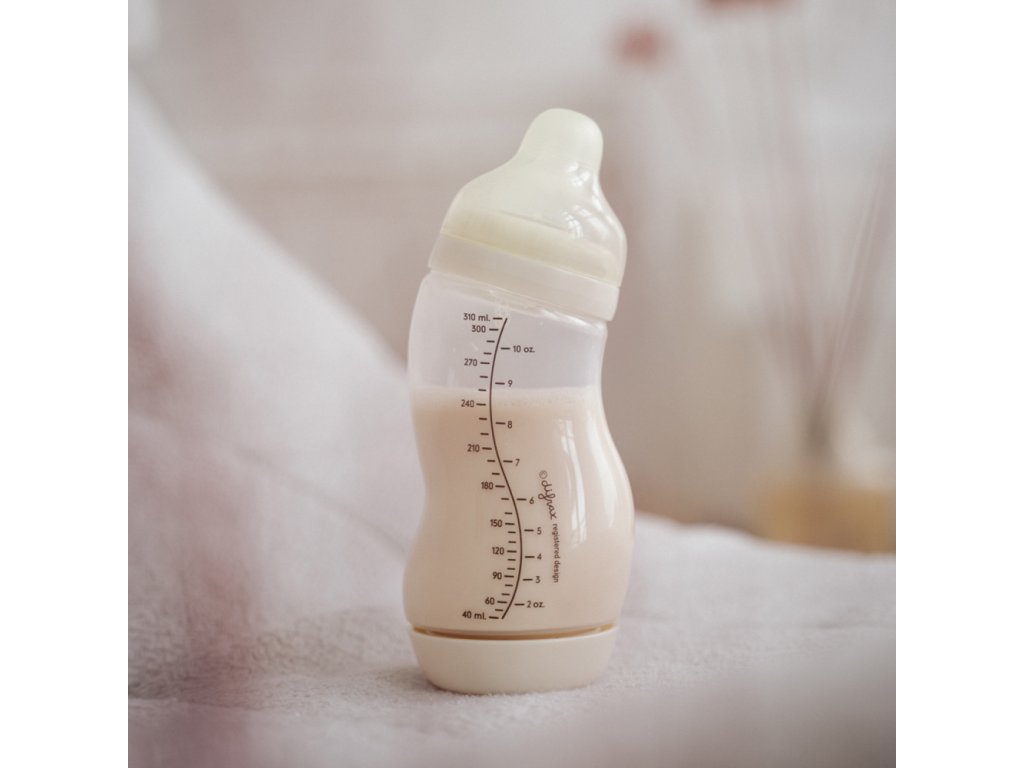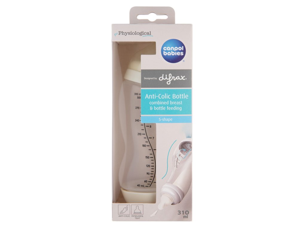 Az egyedi S alakú palack és a palack alján található antikolikos rendszer csökkenti a kólika és a görcsök kockázatát.