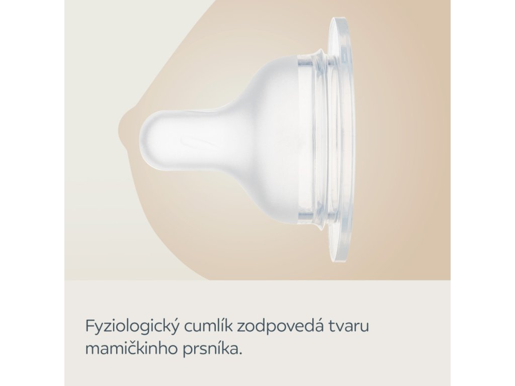 Az S-Shape palackhoz tartozó fiziológiás cumi puha és az anya mellére emlékeztet, ami megkönnyíti a szoptatás és a palackból való etetés kombinálását. Illatmentes, hipoallergén, matt szilikonból készült - a gyerekek könnyen elfogadják. A cumi belsejében lévő kiemelkedések megakadályozzák, hogy ivás közben összeessen és összeragadjon.