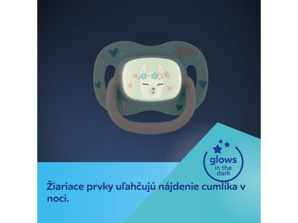 A világító elemek megkönnyítik a cumi megtalálását éjszaka.