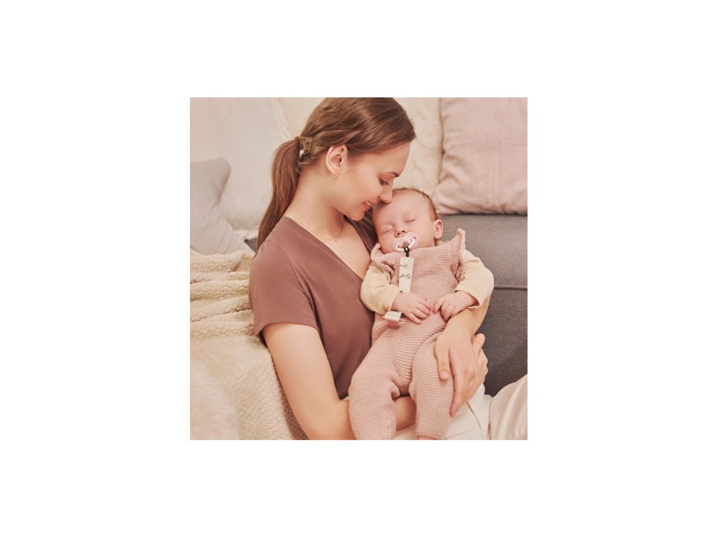 Csak az EN 12586 szabvány szerint tesztelt, speciális cumitartókat használjon. Soha ne rögzítsen más szalagot vagy zsinórt a cumira, mert gyermeke megfulladhat tőle.