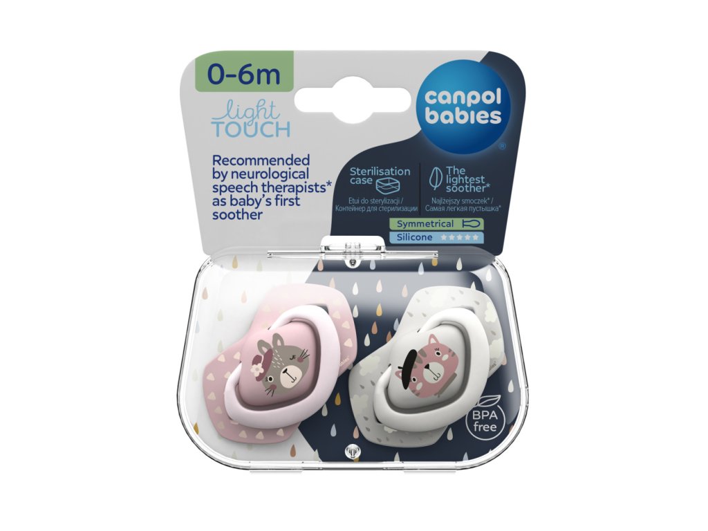 Szakértők által ajánlott, mint az első cumi a gyermekének.* A Light touch cumikat úgy tervezték, hogy maximális kényelmet biztosítsanak a legkisebb gyermekek számára. Rendkívül puha szilikon gumijuk kevesebb szívási erőfeszítést igényel, a könnyű, formázott pajzs pedig nem terheli az okklúziót, és lehetővé teszi a szabad légzést, ami a szakértők szerint jelentős hatással van a szájüreg fejlődésére.** A kényelmes fogantyú lehetővé teszi a cumitartó rögzítését és megkönnyíti a cumi átadását a gyermeknek. A Light touch cumik könnyen tisztán tarthatók a modern tokjuknak köszönhetően, amely tárolásra, valamint gyors és kényelmes mikrohullámú sütőben történő fertőtlenítésre is használható. Csak egy kis víz és két perc szükséges ahhoz, hogy a cumik higiénikusan tiszták legyenek. A Light touch cumik számos, a trendek által ihletett egyedi kollekcióban és különböző méretekben kaphatók – együtt nőnek a gyermekével.