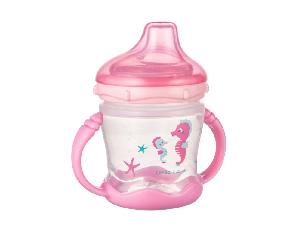 Canpol babies Szilikon szívószálas itatópohár 180 ml LOVE&SEA rózsaszín
