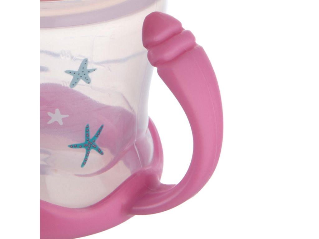 A LOVE&SEA itatópohár kényelmes fogantyúkkal rendelkezik, amelyek segítik a gyermeket abban, hogy a poharat apró kezeiben tartsa. A színes nyomatok biztosan ösztönzik a gyermekeket az önálló ivás megtanulására. A puha szilikon szívóka nem irritálja a baba finom ínyét. A pohár skálával rendelkezik, amely megkönnyíti a folyadékok pontos mérését. Mosogatógépben és mikrohullámú sütőben is használható. 9 hónapos kortól ajánlott. Űrtartalom: 180 ml