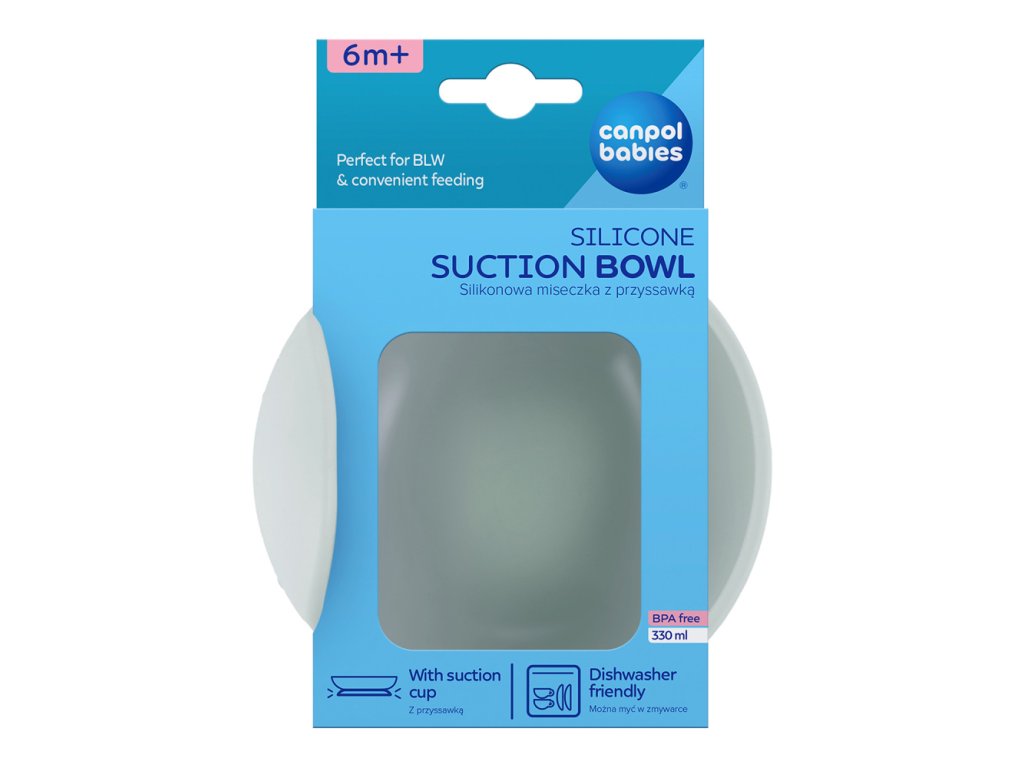 A szilikon tapadókorongos tál tökéletes a baba első ételeihez, amikor elkezdi a kalandot az étrend bővítésével, beleértve a BLW módszert is. A Canpol babies bébiétel tál csúszásgátló tapadókoronggal rendelkezik, amely megakadályozza, hogy a tál ellenőrizetlenül mozogjon az asztal felületén vagy az etetőszék lapján, és megakadályozza az edények felborulását vagy teljes leesését a padlóra. A lekerekített formák és a megemelt, profilozott tálszél megkönnyíti a gyermek számára az étel felszedését. 100%-ban kiváló minőségű, élelmiszeripari szilikonból készült. A szilikon étkészlet rugalmas és tartós, ellenáll az ütéseknek és eséseknek, nem szívja magába a szagokat. Tökéletes leves, tészta, gyümölcsjoghurt vagy gabonapelyhes tej tálalásához. A Canpol babies tál könnyen tisztítható és ellenáll a magas hőmérsékletnek - mikrohullámú sütőben melegíthető és mosogatógépben mosható.