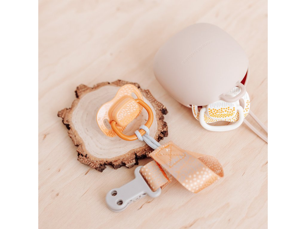 Kényelmes fogantyú - megkönnyíti a cumi átadását a babának, és szalaghoz vagy lánchoz való rögzítését.